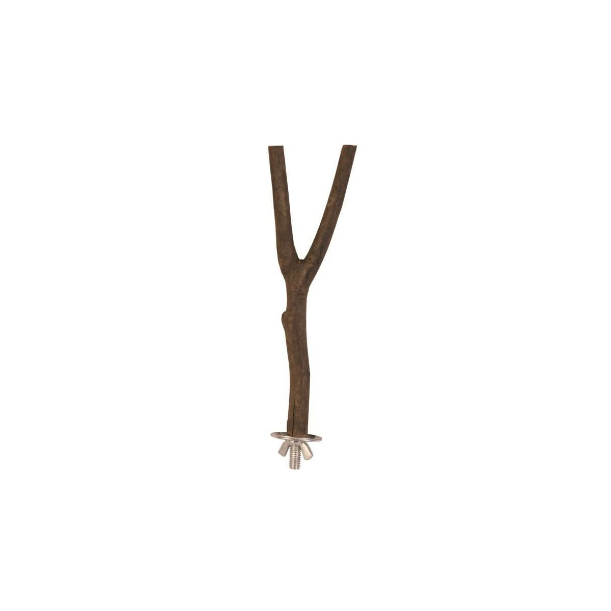 Perchoir Natural Living - En forme de Y - En bois naturel - Avec vis de fixation - La forme naturelle est douce pour les doigts de l'oiseau et contribue a créer un environnement adapté a l'oiseau - Dimensions : 20cmxØ15mm - Pour perruche et canari.Spécifications techniques