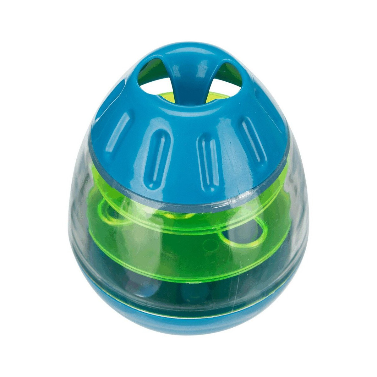 Œuf snack culbuto en plastique 4 assiettes amovibles avec ouvertures qui régulent le débit des friandises différents niveaux de difficulté en fonction de la combinaison des assiettes les friandises tombent au fond avec le mouvement culbuto à dévisser, donc facile à remplir comprend livret avec astuces pour un entraînement optimal Dimensions: 13 cm Photo non contractuelle, car il y a plusieurs vendeurs sur une même fiche produit.Spécifications techniques