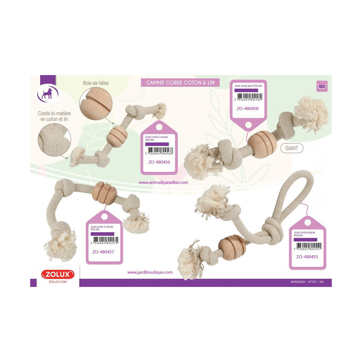 Corde Wild Mix 2 nœuds. taille environ ø 2 cm x 34,5 cm. jouet pour chien. Nouvelle gamme de jouets pour Chien . CORDE WILD Mix en bois de hêtre et fibre naturelle. bi-matière en coton et lin. Nouvelle gamme de jouets NATURELS et DURABLES WILD pour chiens. MATÉRIAUX NATURELS : Cordes en fibres naturelles :bi-matière en coton et lin . Anneaux en bois de hêtre. environ ø 6 cm. SAINS ET LUDIQUES : idéals pour conserver une bonne hygiène dentaire tout en s'amusant. COLORIS : beige . emballage ZERO PLASTIQUE Packaging en carton avec lien coton. Corde Wild Mix 2 nœuds. taille environ ø 2 cm x 34,5 cm. jouet pour chien. Nouvelle gamme de jouets pour Chien . CORDE WILD Mix en bois de hêtre et fibre naturelle. bi-matière en coton et lin. Nouvelle gamme de jouets NATURELS et DURABLES WILD pour chiens. MATÉRIAUX NATURELS : Cordes en fibres naturelles :bi-matière en coton et lin . Anneaux en bois de hêtre. environ ø 6cm. SAINS ET LUDIQUES : idéals pour conserver une bonne hygiène dentaire tout en s'amusant. COLORIS : beige . emballage ZERO PLASTIQUE Packaging en carton avec lien coton. Photo non contractuelle, car il y a plusieurs vendeurs sur une même fiche produit.Spécifications techniques