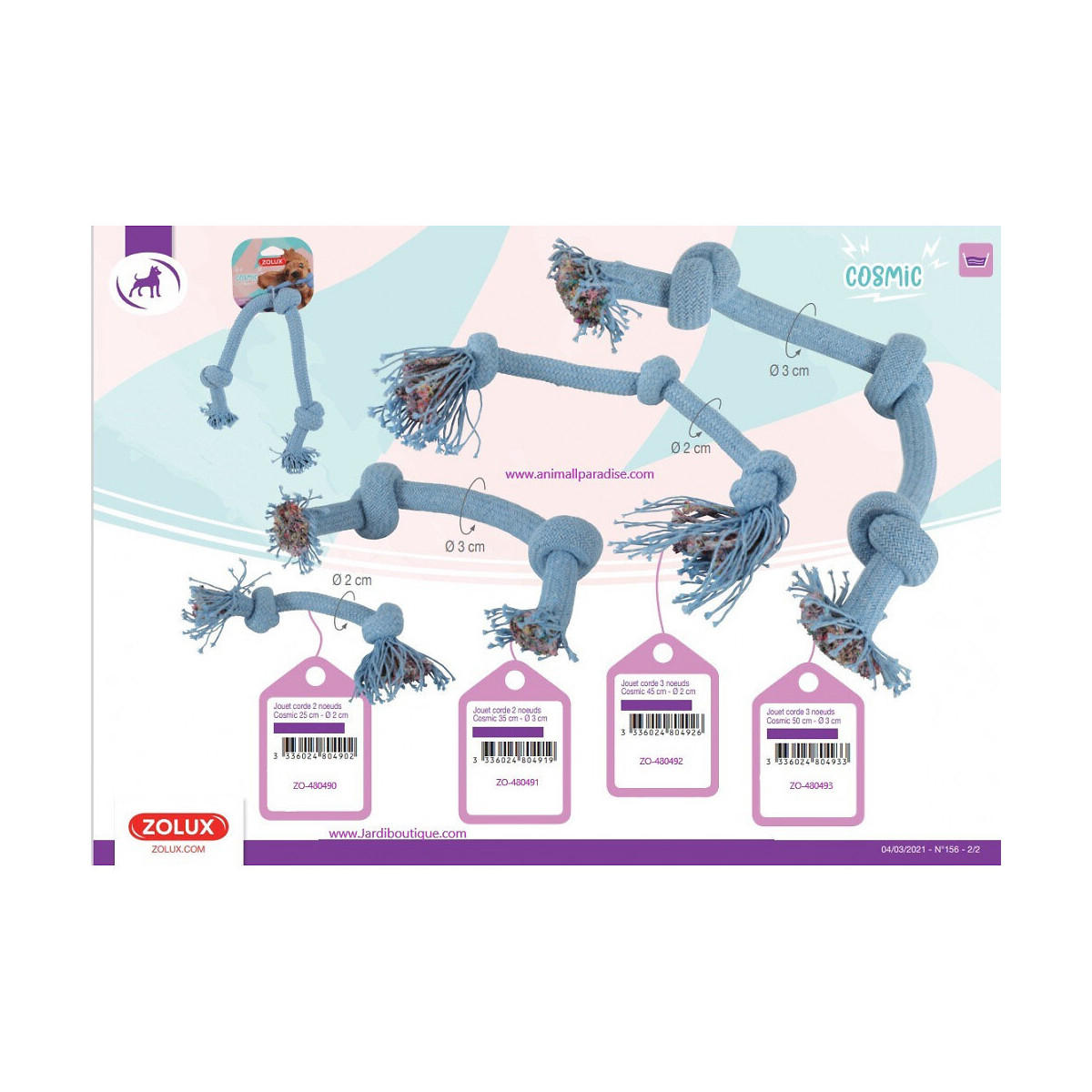 Corde Cosmic 3 Nœuds. Taille Ø 2 Cm X 45 Cm. Jouet Pour Chien. - Zolux - Zo-480492