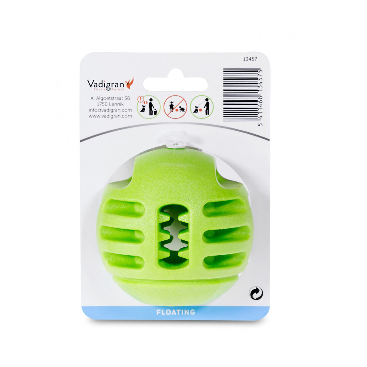 Balle TPR vert pomme ø 8 cm. pour chien. Balle pour chien en TPR très solide. En plus d'être très robuste, ce jouet va être très attractif pour le chien grâce au délicieux parfum de pomme qu'il possède. Pour encore plus de stimulation, vous avez possibilité d'ajouter des snacks dans la balle de jeu. Cette balle en plus de rebondir très bien, flotte sur l'eau. Couleur: vert. Matériau: Caoutchouc thermoplastique. Type: Balle. Propriété: Flottant. Caractéristique: Excellent pour l'hygiène buccale, Possibilité d'y insérer des friandises. Balle TPR vert pomme ø 8 cm. pour chien. Balle pour chien en TPR très solide. En plus d'être très robuste, ce jouet va être très attractif pour le chien grâce au délicieux parfum de pomme qu'il possède. Pour encore plus de stimulation, vous avez possibilité d'ajouter des snacks dans la balle de jeu. Cette balle en plus de rebondir très bien, flotte sur l'eau. Couleur: vert. Matériau: Caoutchouc thermoplastique. Type: Balle. Propriété: Flottant. Caractéristique: Excellent pour l'hygiène buccale, Possibilité d'y insérer des friandises. Photo non contractuelle, car il y a plusieurs vendeurs sur une même fiche produit.Spécifications techniques
