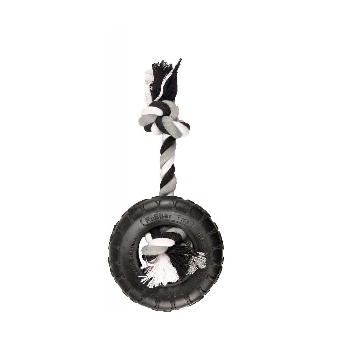 Jouet Caoutchouc Gladiator Pneu Et Corde 15 Cm Noir Pour Chien - Flamingo Pet Products - Fl-518079