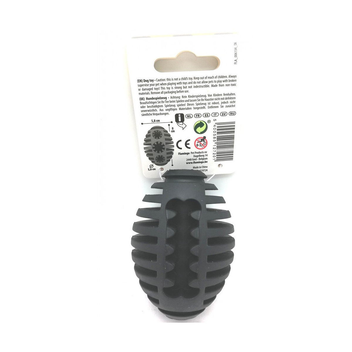 Jouet Pour Chien. Gladiator Rugby S. Noir 8 Cm Ø 5.8 Cm. Extra Strong - Flamingo Pet Products - Fl-519724