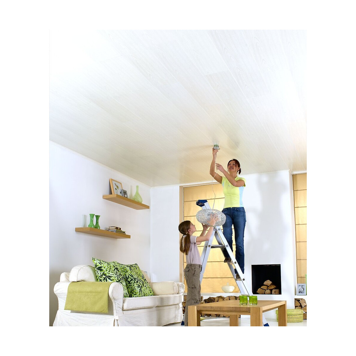 Panneaux muraux et de plafonds à clipser. Le système d'assemblage breveté de Dumaclip prévoit un emboîtement à l'extrémité des panneaux. Ainsi, il est possible de recouvrir n'importe quelle longueur de mur ou de plafond. Vous pouvez recouvrir les plus grandes surfaces sans aucun problème. Grâce au système d'assemblage unique de Dumaclip, vous raccordez les panneaux du côté tête sans utiliser de profil de raccord cher et difficile à installer. Avec Dumaclip, le résultat final est beaucoup plus beau, car les raccords sont finis de la même façon de chaque côté. Les panneaux Dumaclip sont fabriqués à partir d'une matière synthétique entièrement imperméable et lavable. L'entretien est donc très simple. Dumaclip peut être installé souvent à l'extérieur pour de applications comme les carports, les pavillons, etc. Attention, certains panneaux enveloppés d'un film ne sont pas entièrement imperméables (*). Ceci est indiqué dans le feuillet qui se trouve dans la boîte.Spécifications techniques