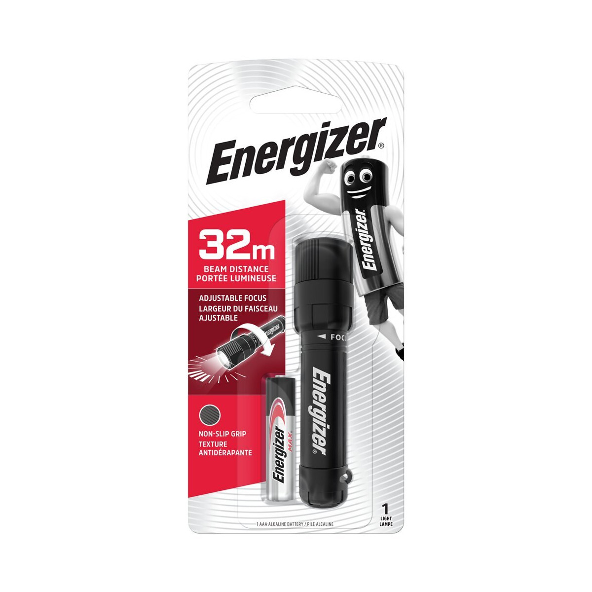 Torche compacte X-Focus à LED ENERGIZER 1AAA (pile incluse). Résiste aux chocs.Spécifications techniques