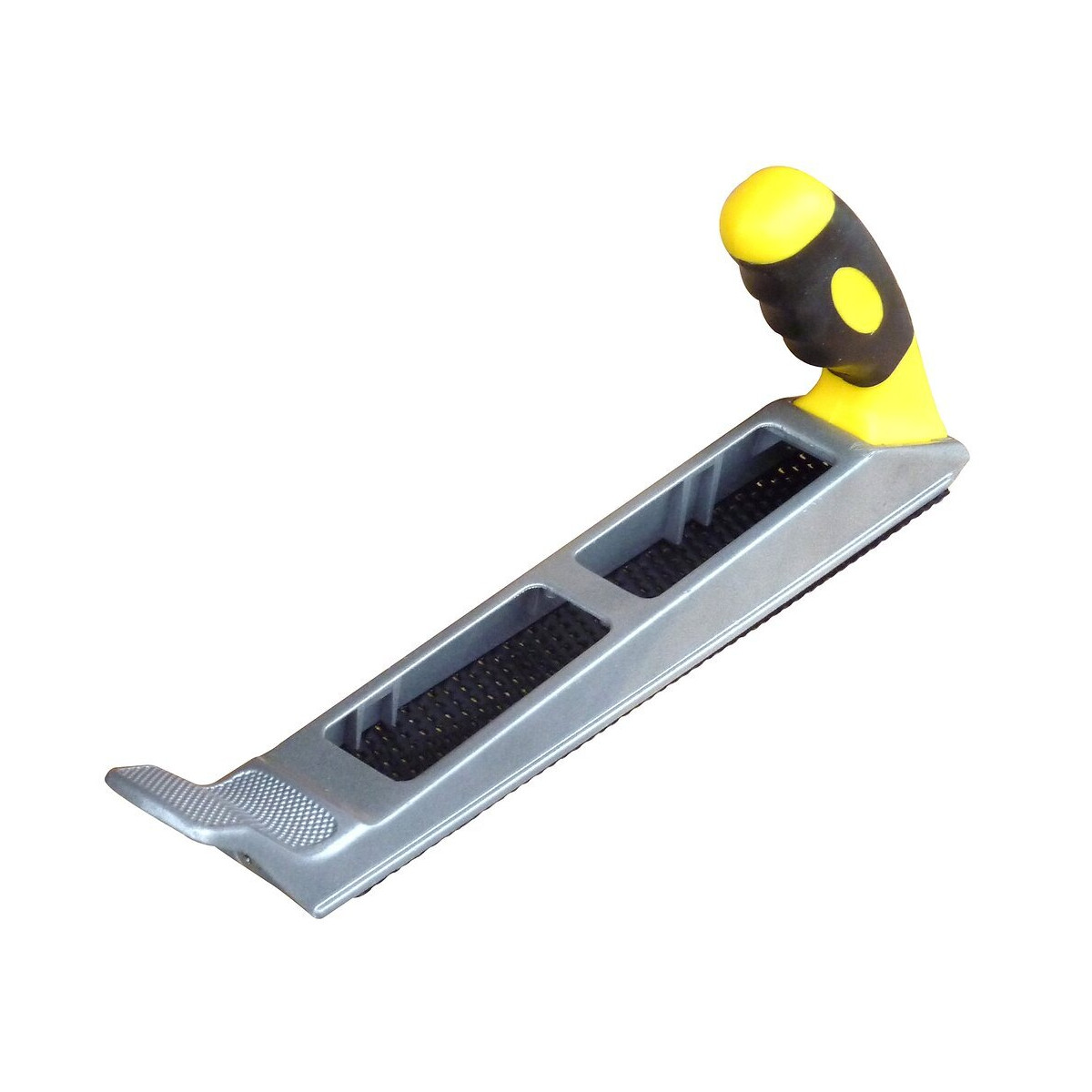 Corps en métal avec poignée bi-matière réversible pour une utilisation en râpe ou en rabot. Repose-paume sur l'avant pour une grande force de travail. Pour râper les bois, stratifiés, plaques et carreaux de plâtre. Permet de créer un chanfrein. Lame droite 250 mm.