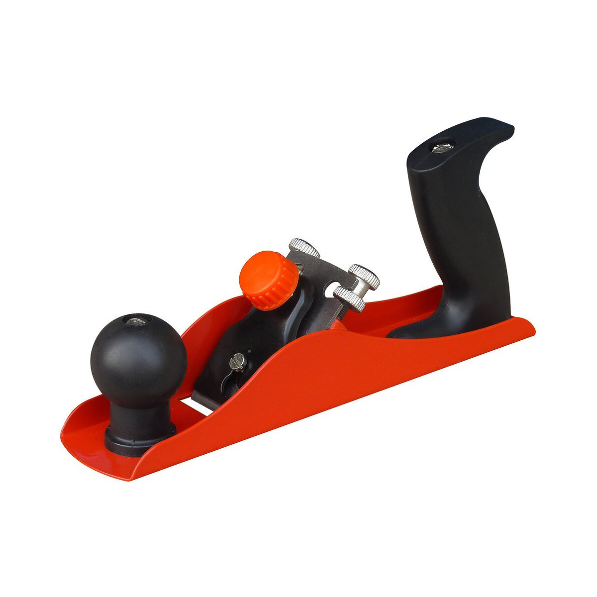 Corps en tôle laquée avec semelle usinée, poignées avant et arrière plastique. Double vis permettant le réglage de la profondeur de coupe et le gauchissement. Large vis pour le serrage. Utilise les fers de rabot réf. 1810214. Dimension semelle : 235 x 50 mm Largeur fer : 44 mm