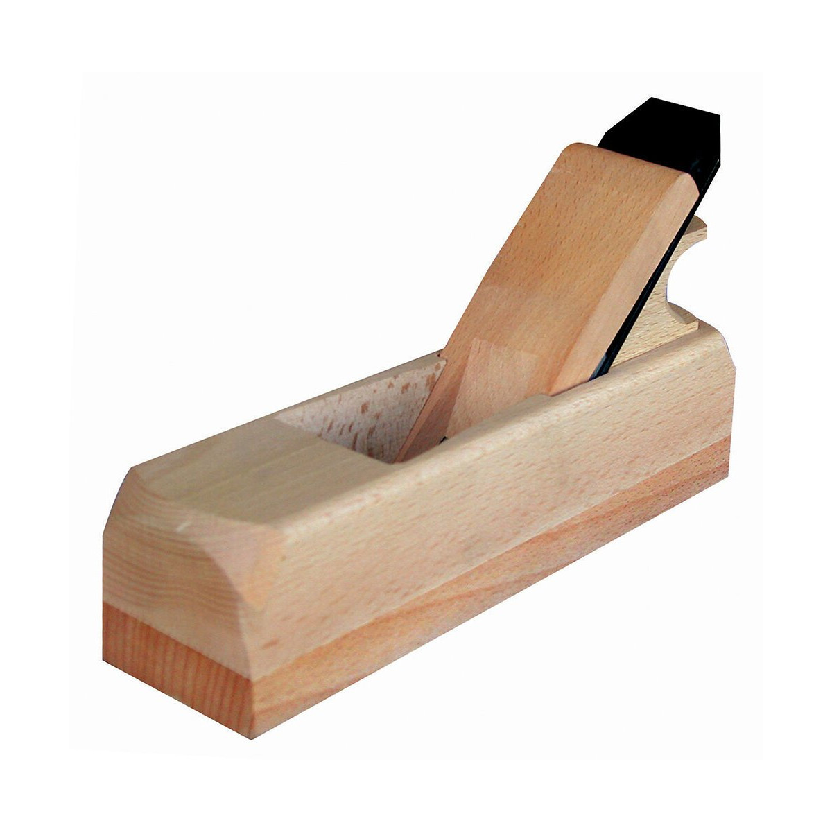 Corps composé d'un bois tendre pour le corps et d'un bois dur pour la semelle, assemblés par collage assurant la stabilité de forme et la résistance à l'usure. Repose main à l'arrière. Angle de coupe 45°. Utilise les fers de rabot réf. 1810305. Dimension semelle : 220 x 60 mm Largeur fer : 44 mm