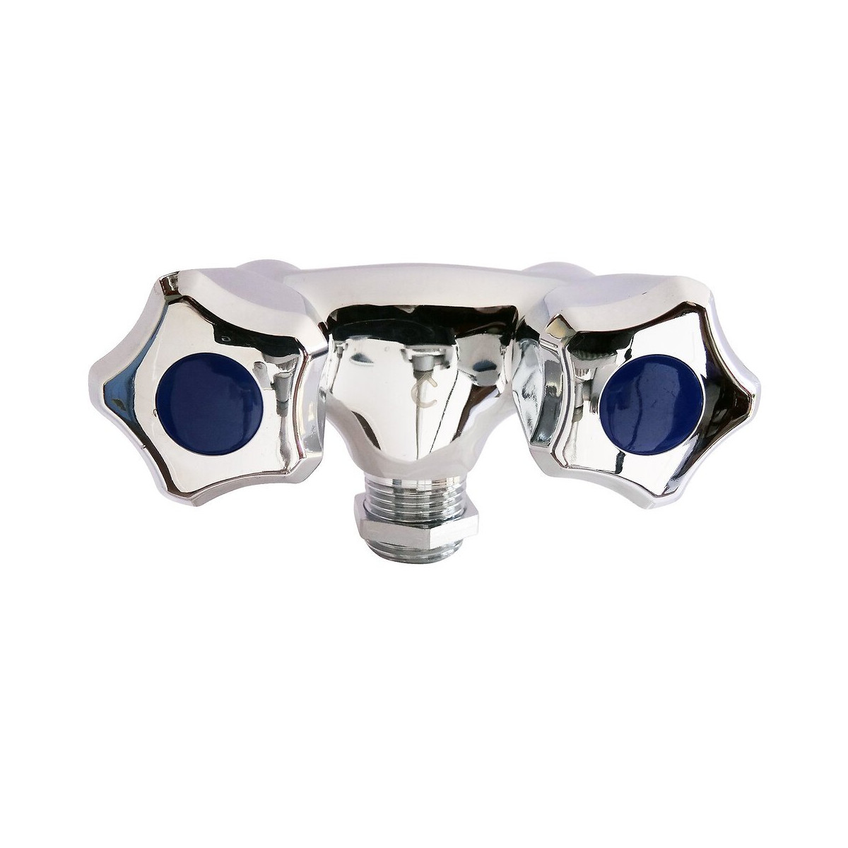 Le robinet mural de machine à laver double tête permet de raccorder simultanément 2 appareils (lave-linge ou un lave-vaisselle) au circuit d'eau de la maison. Les 2 sorties d'eau sont indépendantes, donc peuvent être ouvertes ou fermées séparément. Le corps de ce robinet en laiton lui assure une robustesse inégalable. Les manettes de fermeture sont en ABS issues de la filière recyclage (composant recyclé et recyclable).