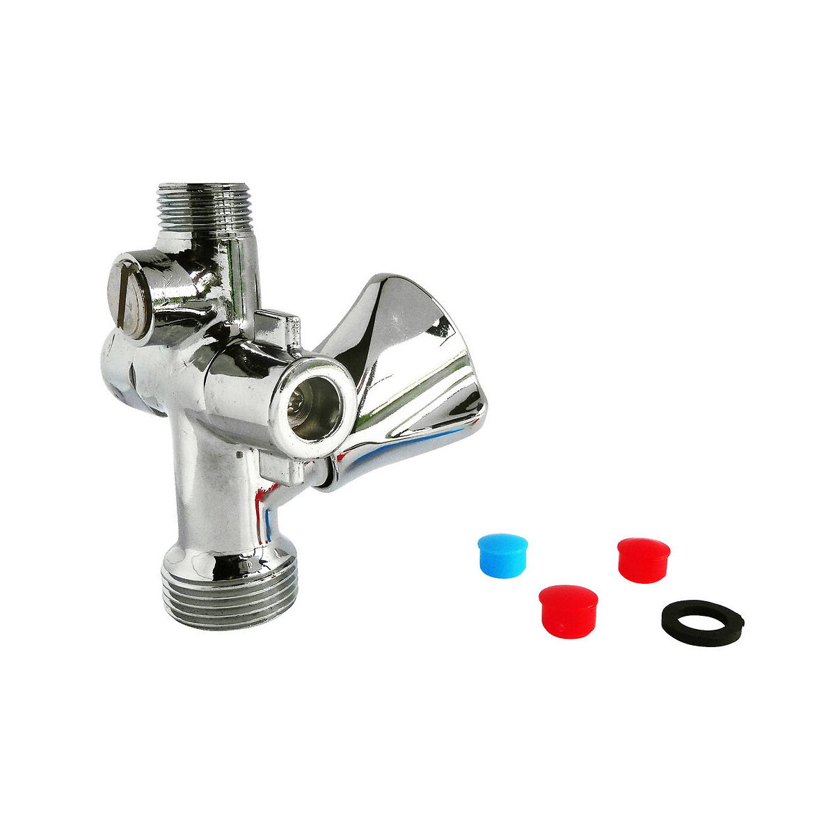 Robinet monobloc en laiton chromé à vanne 1/4 de tour pour isoler la robinetterie. Sortie basse M20/27 pour raccorder une machine à laver Sortie latérale F8/13 pour raccorder un frigo américain ou un appareil de traitement d'eau. Fourni avec joint plat d'étanchiété.