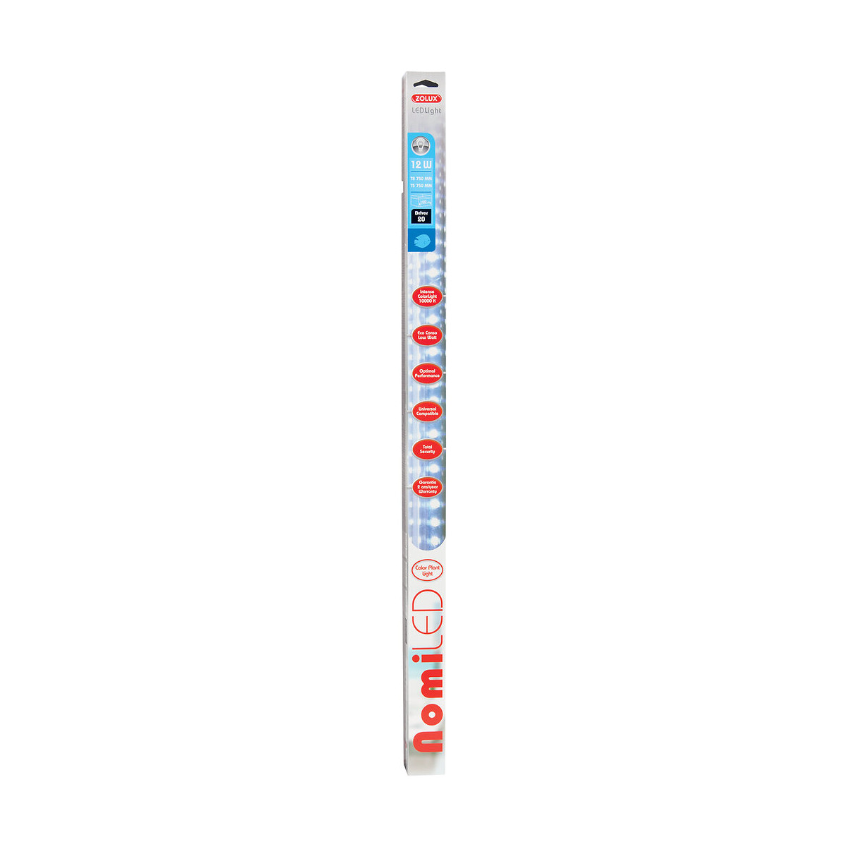 Tube LED destiné à remplacer les tubes Fluorescents pour aquariums. Le tube NomiLed intensifie le rendu couleur des plantes et des poissons et contribue à la croissance des plantes. Avantages : consommation éléctrique 2 à 3 moindre, rendement lumineux supérieur, qualité et durée de vie plus longue. Compatible avec toutes les installations fluorescentes d'origne T8 et T5. Installation facilitée grâce à l’aide des adaptateurs fournis, sans modifications par l’utilisation des supports d’origine. Sécurité garantie grâce à la basse tension sécurisée et l’étanchéité IP67. La matière plastique plutôt que le verre a également été privilégiée pour une sécurité renforcée. Qualité et durée de vie garantie 2 ans. Le tube Nomiled 700mm remplacera un tube T8 de 750mm ou un tube T5 de 750mm, il convient pour un aquarium de 100cm. Consommation : 12W. Nombre de Kelvin : 10000 K. Nombre de lumen par Watts : 80 lm/W. Attention le tube Supraled est fournie SANS alimentation, il faut pour le faire fonctionner le Driver LED Zolux 20W.