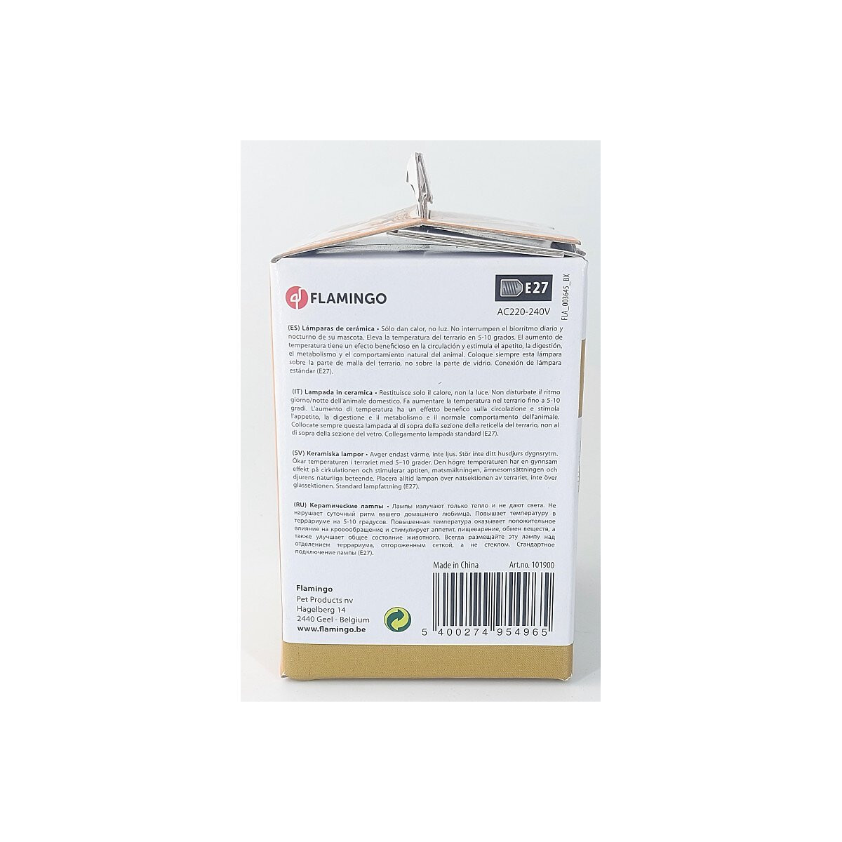 Lampe ceramique HELIOS 60 W Ne dégage que de la chaleur, pas de la lumière. Ne perturbe pas le rythme de jour et de nuit de votre animal. Augmente la température dans le terrarium de 5 à 10 degrés. L'augmentation de la température a un effet bénéfique sur la circulation et stimule l'appétit, la digestion, le métabolisme et le comportement naturel des animaux. Placez toujours cette lampe au-dessus de la section de gaze du terrarium, pas au-dessus de la section en verre. Connexion lampe standard (E27). Lampe ceramique HELIOS 60 W Ne dégage que de la chaleur, pas de la lumière. Ne perturbe pas le rythme de jour et de nuit de votre animal. Augmente la température dans le terrarium de 5 à 10 degrés. L'augmentation de la température a un effet bénéfique sur la circulation et stimule l'appétit, la digestion, le métabolisme et le comportement naturel des animaux. Placez toujours cette lampe au-dessus de la section de gaze du terrarium, pas au-dessus de la section en verre. Connexion lampe standard (E27). Photo non contractuelle, car il y a plusieurs vendeurs sur une même fiche produit.