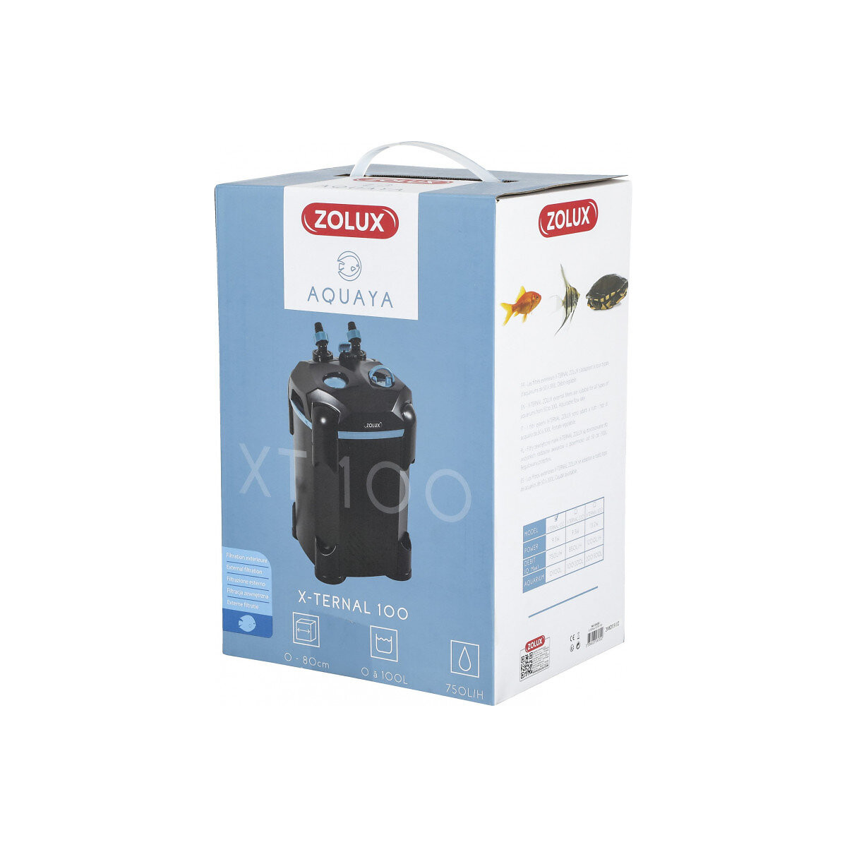 Pompe x-ternal 100 puissance 9.3 w debit max 750l/h max 100l . Les filtre extérieurs x-ternal zolux s'adaptent à tous types d'aquariums de 0 à 100l. débit réglable. Buse rotative. Réglage de débit. Pompe d'amorçage. 2 panier pour masse de filtrations/ facilité d'entretien. Pompe x-ternal 100 puissance 9.3 w debit max 750l/h max 100l . Les filtre extérieurs x-ternal zolux s'adaptent à tous types d'aquariums de 0 à 100l. débit réglable. Buse rotative. Réglage de débit. Pompe d'amorçage. 2 panier pour masse de filtrations/ facilité d'entretien. Inclus : XT100B perslon : filtration des particules fines. XT100A : mousse bleue medium, filtration des grosses particules. XT100F zeolite : support de bactérie. Photo non contractuelle, car il y a plusieurs vendeurs sur une même fiche produit.