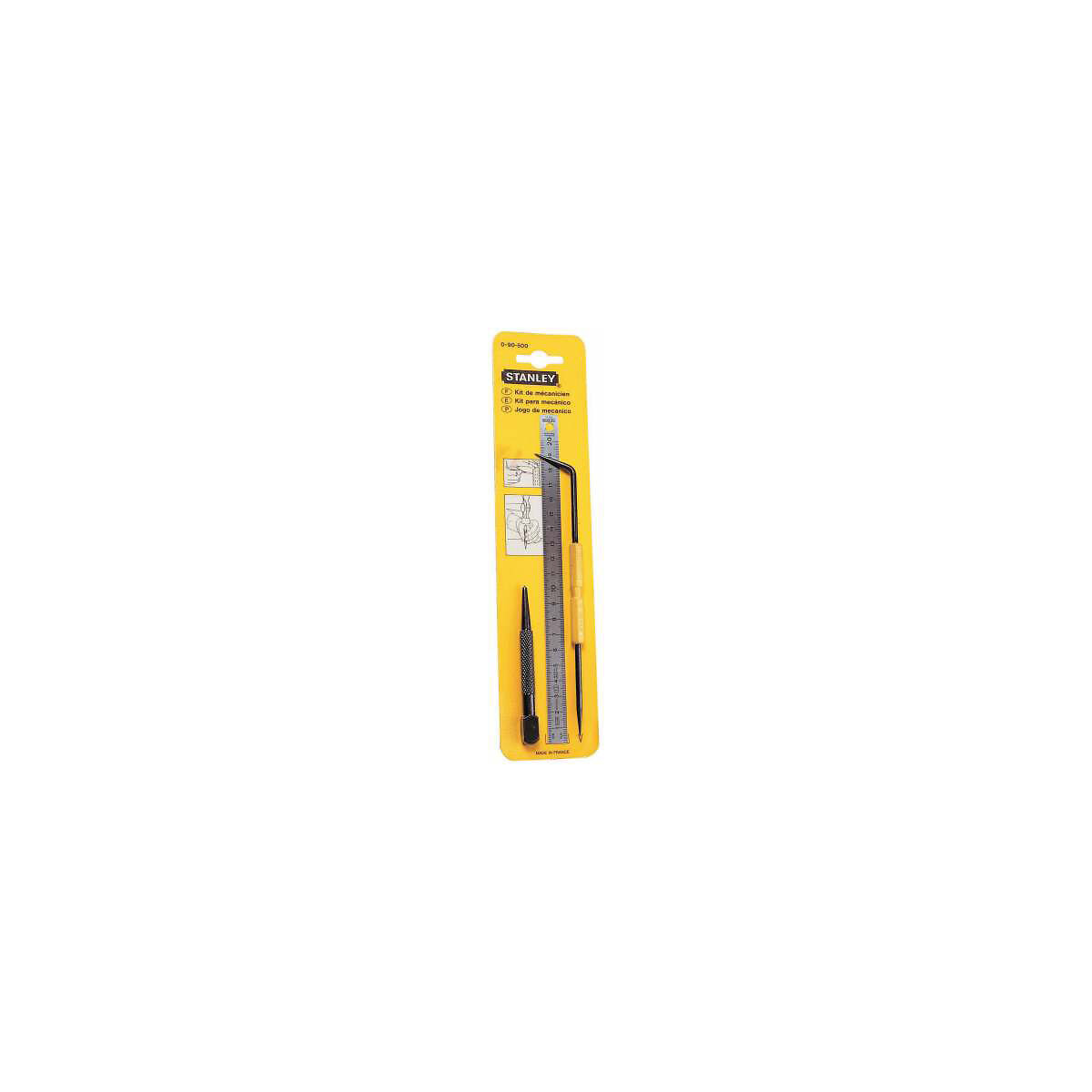 Kit de traçage : composé d'un réglet inox de 200mm x 13mm gradué recto, d'un ,pointeau tête carrée et d'une pointe à tracer. Couleur Jaune