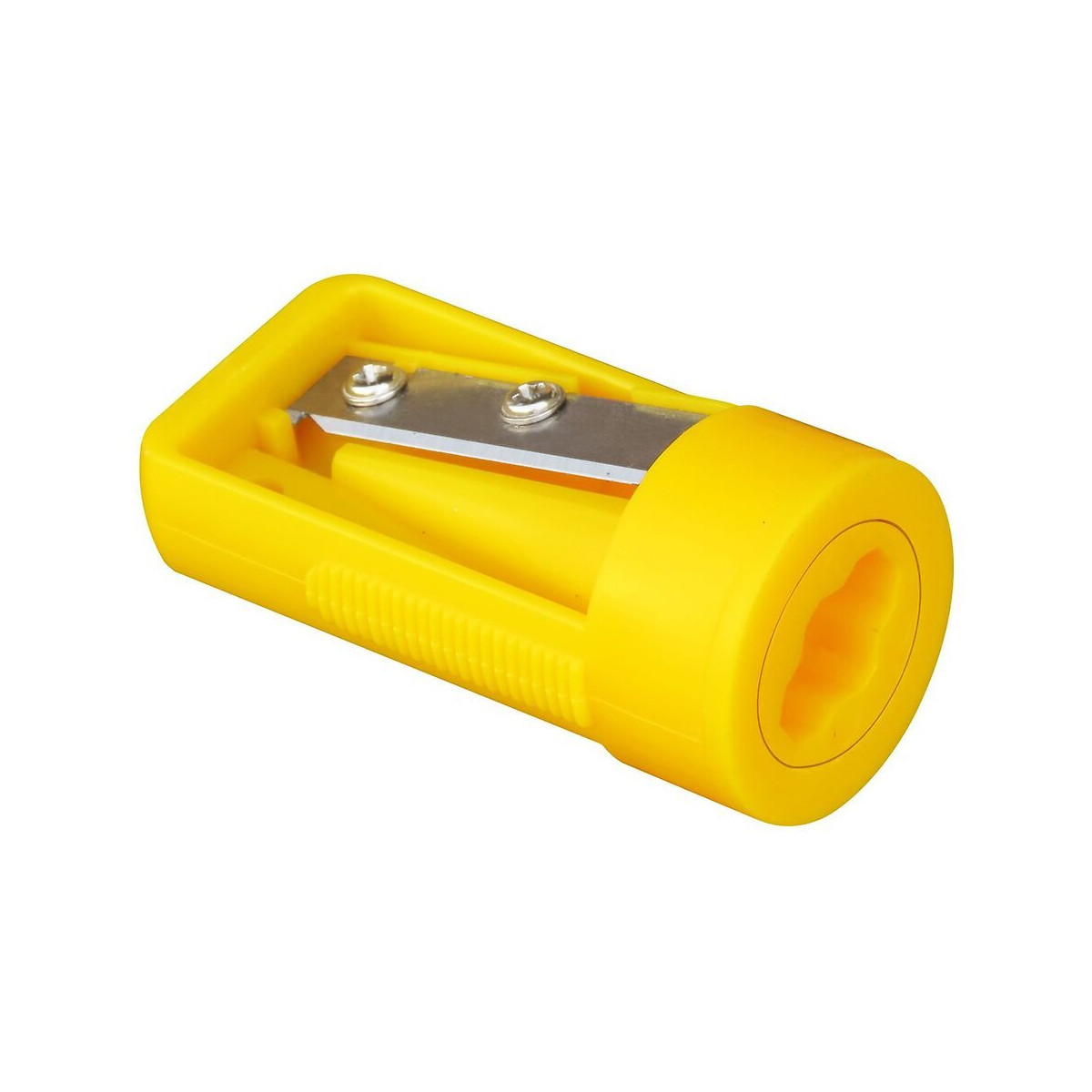 1 taille crayon Pour crayons de charpentiers et de menuisiers. Fonctionne efficacement avec toutes les sections : ronde, ovale, triangulaire, plate, etc. Guide pivotant qui maintient le crayon dans l'axe et au centre pour une taille régulière. Pierre d'affûtage intégrée pour affiner ou adoucir la pointe.