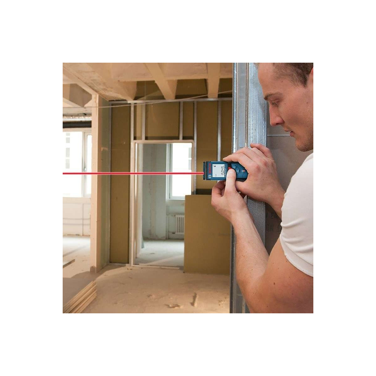 TOUTES LES FONCTIONNALITÉS DE VOTRE TÉLÉMÈTRE LASER GLM 40 PRO Toutes les fonctions essentielles dans un ensemble compact Mesure de longueurs, calcul de surfaces et de volumes, utilisation intuitive Grand écran de trois lignes rétro-éclairé pour une visibilité parfaite Fonction mémoire permettant un accès simple aux 10 dernières mesures Boîtier antichoc robuste, classe de protection IP54 (projections d'eau et poussières) Résultats de mesure fiables dans toutes les circonstances, conformément à la certification ISO CARACTERISTIQUES TECHNIQUES Diode laser 635 nm, < 1 mW Plage de mesure 0,15 – 40 M Classe laser 2 Précision de mesure, type +/- 1,5 mm Temps de mesure moyen < 0,5 s Temps de mesure max. 4 s Alimentation 2 piles 1,5 V LR03 (AAA) Coupure automatique 5 min. Poids approx. 0,09 kg Longueur 105 mm Largeur 41 mm Hauteur 24 mm Unités de mesure m/cm, ft/inch Durée de vie batterie, mesures individuelles env. 5.000 Étanchéité à l'eau et à la poussière IP 54 Fonctions Mesure indirecte de hauteurs ACCESSOIRES LIVRÉS AVEC 2 piles 1,5 V LR03 (AAA) Sac de transport