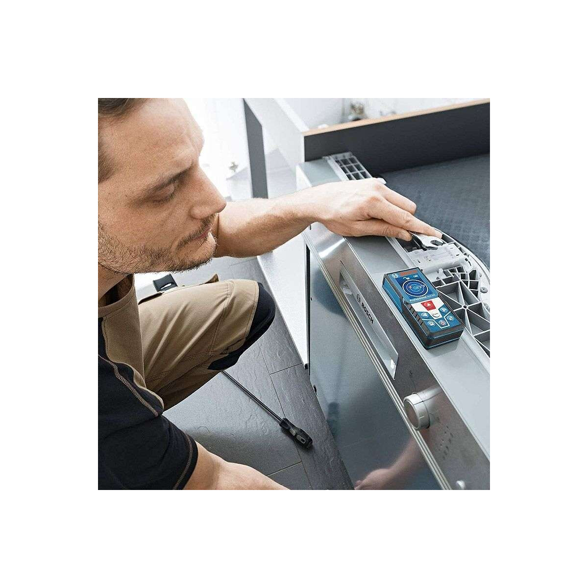 AVANTAGES PRODUIT Télémètre laser BOSCH GLM500 Professional La solution idéale pour mesurer, mémoriser et archiver en toute simplicité. Cet outil 2-en-1 allie à la fois la fonction télémètre et inclinomètre. Grande facilité d'utilisation avec interface de commande améliorée et écran couleur pivotant et rétroéclairé. Fonctionnalités étendues avec un capteur d'inclinaison sur 360° pour mesures angulaires et applications de mise à niveau simples. Robuste et fiable avec certification ISO et indice de protection IP 54. Mémorisation automatique des 20 dernières valeurs mesurées et d'une constante. Mesures : - d'inclinaison intégrée - indirecte de distances Pythagore - indirecte de hauteurs - de surfaces murales - mesures minimum/maximum CARACTERISTIQUES Télémètre laser BOSCH GLM500 Professional Diode laser 635 nm, < 1 mW Plage de mesure 0,05 – 50 m Unités de mesure: m/cm ft/inch Classe laser 2 Précision de mesure, typ. +/- 1,5 mm à 50 m Temps de mesure typ. < 0,5 s Temps de mesure maxi. 4 s Coupure automatique: 5 min. Étanchéité à l'eau et à la poussière: IP 54 Plage de mesure d'inclinaison 0 - 360° (4 x 90°) Précision de mesure (typique) +/- 0,2° Alimentation 2 piles 1,5 V LR03 (AAA) Durée de vie batterie, mesures individuelles env. 10.000 Durée de vie batterie, autonomie env. 2,5 H Poids env. 0,1 kg L.106 x larg. 45 x H. 24 mm Nombre de valeurs d'enregistrement 20 Filetage du trépied 1/4'