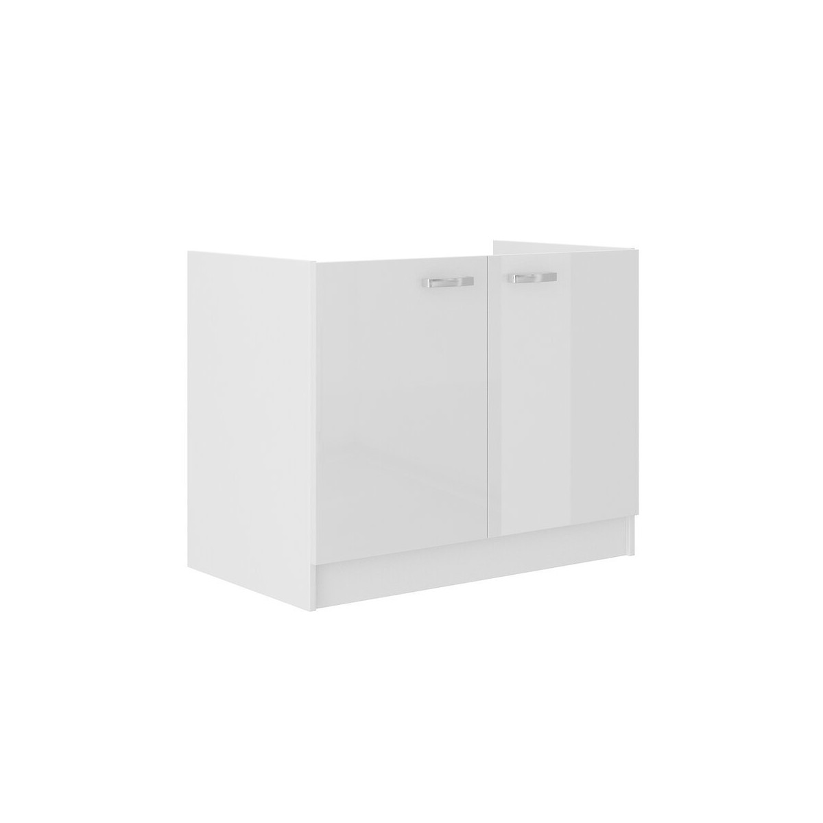 Meuble sous évier de 100, 2 portes, blanc. Panneau mélaminé 16mm, chant des bords étroits mélaminé 0,4 mm, charnières métallique 35 mm soft close, poignée métal.Spécifications techniques