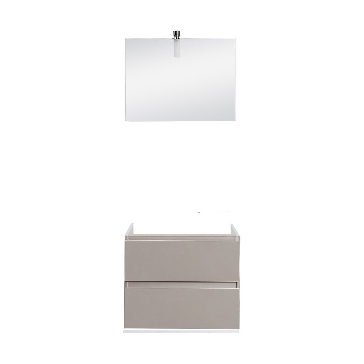 Caisson meuble de salle de bain Sweet cappuchino :Lot comprenant : - Meuble a suspendre avec 2 tiroirs - Dimension : 590 x 450 x 500mm Couleur : Cappucino - Miroir éclairant Dimension : 600 x 450 x 15mm - Ampoule non incluseSpécifications techniques