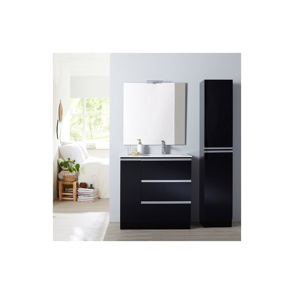 Cette colonne de salle de bain est composé d'une structure en panneau de particules mélaminé 16 mm et d'une façade mélaminés en 16 mm. Celle-ci intègre deux portes avec rail dissimulé en aluminium brillant à extraction partielle. Les façades sont en finition laquées noir brillant. Ce meuble dispose de 4 étagères en verre et d'une étagère centrale en bois. Colonne de salle de bain à poser Couleur : Noir brillant Dimensions du meuble : L35 x H180 x P36.6 cm Poids : 30.6Kg Meuble livré monté Fabrication Européenne Cette colonne existe en oak bordolino et en blanc
