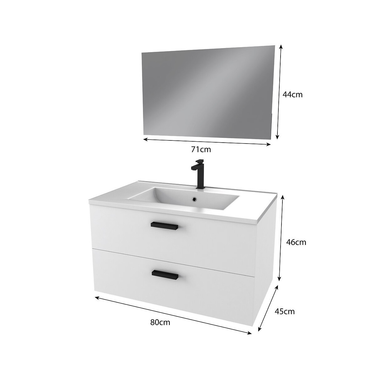 Caractéristiques techniques du BOX-IN 80 WHITE: Dimensions H46xL80xP45cm Caisson BOX-IN 80 WHITE en mélaminé blanc 2 tiroirs avec façades laquées blanches Fourni avec 2 poignées en aluminium noir mat Vasque: Vasque en céramique avec trop plein Trop plein chromé Perçage pour robinetterie (non-fournie) Robinetterie non-fournie Miroir: Dimensions: 71 x 44cm (L: 71cm x H: 44cm) Miroir à suspendre avec fixation métallique Les Plus produit: Meuble livré monté Prêt à installer Référence: LAV504 Garantie 2 ans pièces et non main d'oeuvre. Cocorico ! MyShowerRoom est une entreprise Française et toute la conception de nos produits est également Française. Ce qui est un véritable plus pour être au plus près de ses clients et avoir une meilleure connaissance de leurs attentes. Qui sommes nous L’HISTOIRE DE MYSHOWERROOM Nous avons créé MyShowerRoom en 2003 avec l’ambition de démocratiser le design et l’innovation dans la salle de bain pour faire de cette pièce un lieu à part entière, un véritable lieu d’histoires à vivre pour toute la famille. Nos cabines de douche et meubles de salle de bain dans l’ère du temps à des tarifs très accessibles. Nos nombreux brevets garantissent l’originalité de notre gamme de cabines de douches. Et nos ingénieurs mettent en œuvre tout leur savoir-faire et toutes les technologies innovantes au service d’une simplicité d’installation et d’utilisation incomparable pour tous. ÊTRE BIENVEILLANT AVEC NOS CLIENTS Notre service client a un objectif : rendre nos clients heureux. Pour cela nous veillons à répondre dans les 24h aux demandes clients. Mais aussi de toujours apporter une solution et entière satisfaction à nos clients. CONSTRUIRE DES PRODUITS TOUJOURS PLUS PERFORMANTS Nos ingénieurs, ainsi que nos équipes terrain consacrent tous leurs efforts à créer des produits adaptés à vos besoins, et toujours plus innovants grâce à nos technologies. Notre objectif est d’être votre unique interlocuteur pour tous vos projets de salle de bain. CONCRÉTISER LES RÊVES DE CHACUN Un projet de salle de bain ? Nous le réalisons ! Lieu de détente et de relaxation par excellence, la salle de bain est une des pièces maîtresse de la maison. Chez MyShowerRoom, nous mettons tout en oeuvre afin que ce rêve devienne réalité. PROPOSER UNE GAMME COMPLÈTE DE PRODUITS Nous vous proposons grâce à notre boutique en ligne une gamme complète de produits Made in MyShowerRoom pour équiper, et accessoiriser votre salle de bain. Un catalogue que nous renouvelons régulièrement avec les dernières technologies MyShowerRoom. APPORTER UNE EXPERTISE HUMAINE Parce que l’humain passe avant tout, nous travaillons avec les meilleurs experts. La satisfaction de nos clients est notre seule et unique priorité. Chaque problème a une solution, et c’est dans cette optique que nous avons mis en place un chat pour échanger directement avec nos équipes. NOTRE CENTRE LOGISTIQUE 11 000 m² d’entrepôt 7000 palettes en stock 1 800 colis traités par jour Plus de 260 préparations de commandes quotidiennes 12 quais de chargement/déchargement CONSEILS & VENTES Une équipe disponible 5 jours sur 7 pour vous accompagner dans vos achats. LIVRAISON GRATUITE Pour toute commande sur le site MyShowerRoom, la livraison est gratuite dans toute la France. UNE GARANTIE DE QUALITÉ Grâce à nos produits brevetés vous bénéficiez de produits uniques. Référence produit: LAV504 Retrouvez plus d'informations produit et des conseils de montage sur le site Aurlane. Remarques importantes: Ces colis sont volumineux, la livraison est effectuée par transporteur spécialisé en bas de chez vous. Les chauffeurs ne sont pas habilités à porter la marchandise, mais uniquement à la décharger. Pas de livraison à l'étage. L'adresse de livraison doit être accessible en camion poids lourd. Dans le cas contraire la marchandise sera mise à disposition au dépôt le plus proche (distance non garantie). Les rendez-vous sont gérés directement par les transporteurs. Attention à bien contrôler la marchandise à réception pour éviter tous litiges.