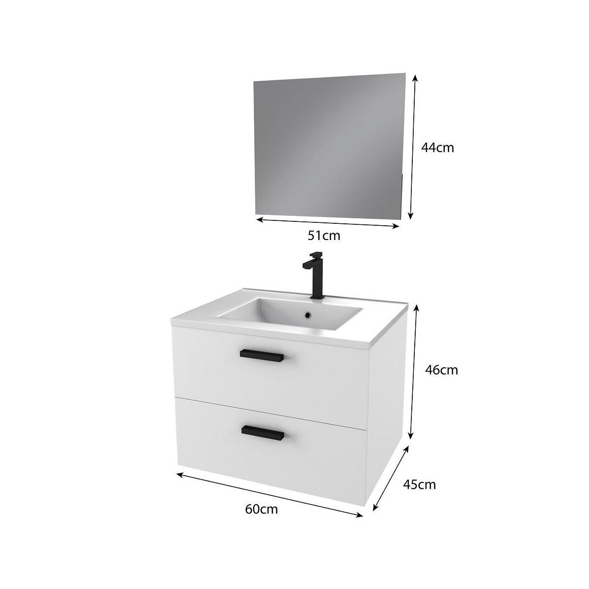 Caractéristiques techniques du BOX-IN 60 WHITE: Dimensions H46xL60xP45cm Caisson BOX-IN 60 WHITE en mélaminé blanc 2 tiroirs avec façades laquées blanches Fourni avec 2 poignées en aluminium noir mat Vasque: Vasque en céramique avec trop plein Trop plein chromé Perçage pour robinetterie (non-fournie) Robinetterie non-fournie Miroir: Dimensions: 51 x 44cm (L: 51cm x H: 44cm) Miroir à suspendre avec fixation métallique Les Plus produit: Meuble livré monté Prêt à installer Garantie 2 ans pièces uniquement Cocorico ! MyShowerRoom est une entreprise Française et toute la conception de nos produits est également Française. Ce qui est un véritable plus pour être au plus près de ses clients et avoir une meilleure connaissance de leurs attentes. Qui sommes nous L’HISTOIRE DE MYSHOWERROOM Nous avons créé MyShowerRoom en 2003 avec l’ambition de démocratiser le design et l’innovation dans la salle de bain pour faire de cette pièce un lieu à part entière, un véritable lieu d’histoires à vivre pour toute la famille. Nos cabines de douche et meubles de salle de bain dans l’ère du temps à des tarifs très accessibles. Nos nombreux brevets garantissent l’originalité de notre gamme de cabines de douches. Et nos ingénieurs mettent en œuvre tout leur savoir-faire et toutes les technologies innovantes au service d’une simplicité d’installation et d’utilisation incomparable pour tous. ÊTRE BIENVEILLANT AVEC NOS CLIENTS Notre service client a un objectif : rendre nos clients heureux. Pour cela nous veillons à répondre dans les 24h aux demandes clients. Mais aussi de toujours apporter une solution et entière satisfaction à nos clients. CONSTRUIRE DES PRODUITS TOUJOURS PLUS PERFORMANTS Nos ingénieurs, ainsi que nos équipes terrain consacrent tous leurs efforts à créer des produits adaptés à vos besoins, et toujours plus innovants grâce à nos technologies. Notre objectif est d’être votre unique interlocuteur pour tous vos projets de salle de bain. CONCRÉTISER LES RÊVES DE CHACUN Un projet de salle de bain ? Nous le réalisons ! Lieu de détente et de relaxation par excellence, la salle de bain est une des pièces maîtresse de la maison. Chez MyShowerRoom, nous mettons tout en oeuvre afin que ce rêve devienne réalité. PROPOSER UNE GAMME COMPLÈTE DE PRODUITS Nous vous proposons grâce à notre boutique en ligne une gamme complète de produits Made in MyShowerRoom pour équiper, et accessoiriser votre salle de bain. Un catalogue que nous renouvelons régulièrement avec les dernières technologies MyShowerRoom. APPORTER UNE EXPERTISE HUMAINE Parce que l’humain passe avant tout, nous travaillons avec les meilleurs experts. La satisfaction de nos clients est notre seule et unique priorité. Chaque problème a une solution, et c’est dans cette optique que nous avons mis en place un chat pour échanger directement avec nos équipes. NOTRE CENTRE LOGISTIQUE 11 000 m² d’entrepôt 7000 palettes en stock 1 800 colis traités par jour Plus de 260 préparations de commandes quotidiennes 12 quais de chargement/déchargement CONSEILS & VENTES Une équipe disponible 5 jours sur 7 pour vous accompagner dans vos achats. LIVRAISON GRATUITE Pour toute commande sur le site MyShowerRoom, la livraison est gratuite dans toute la France. UNE GARANTIE DE QUALITÉ Grâce à nos produits brevetés vous bénéficiez de produits uniques. Référence produit: LAV502 Retrouvez plus d'informations produit et des conseils de montage sur le site Aurlane. Remarques importantes: Ces colis sont volumineux, la livraison est effectuée par transporteur spécialisé en bas de chez vous. Les chauffeurs ne sont pas habilités à porter la marchandise, mais uniquement à la décharger. Pas de livraison à l'étage. L'adresse de livraison doit être accessible en camion poids lourd. Dans le cas contraire la marchandise sera mise à disposition au dépôt le plus proche (distance non garantie). Les rendez-vous sont gérés directement par les transporteurs. Attention à bien contrôler la marchandise à réception pour éviter tous litiges.