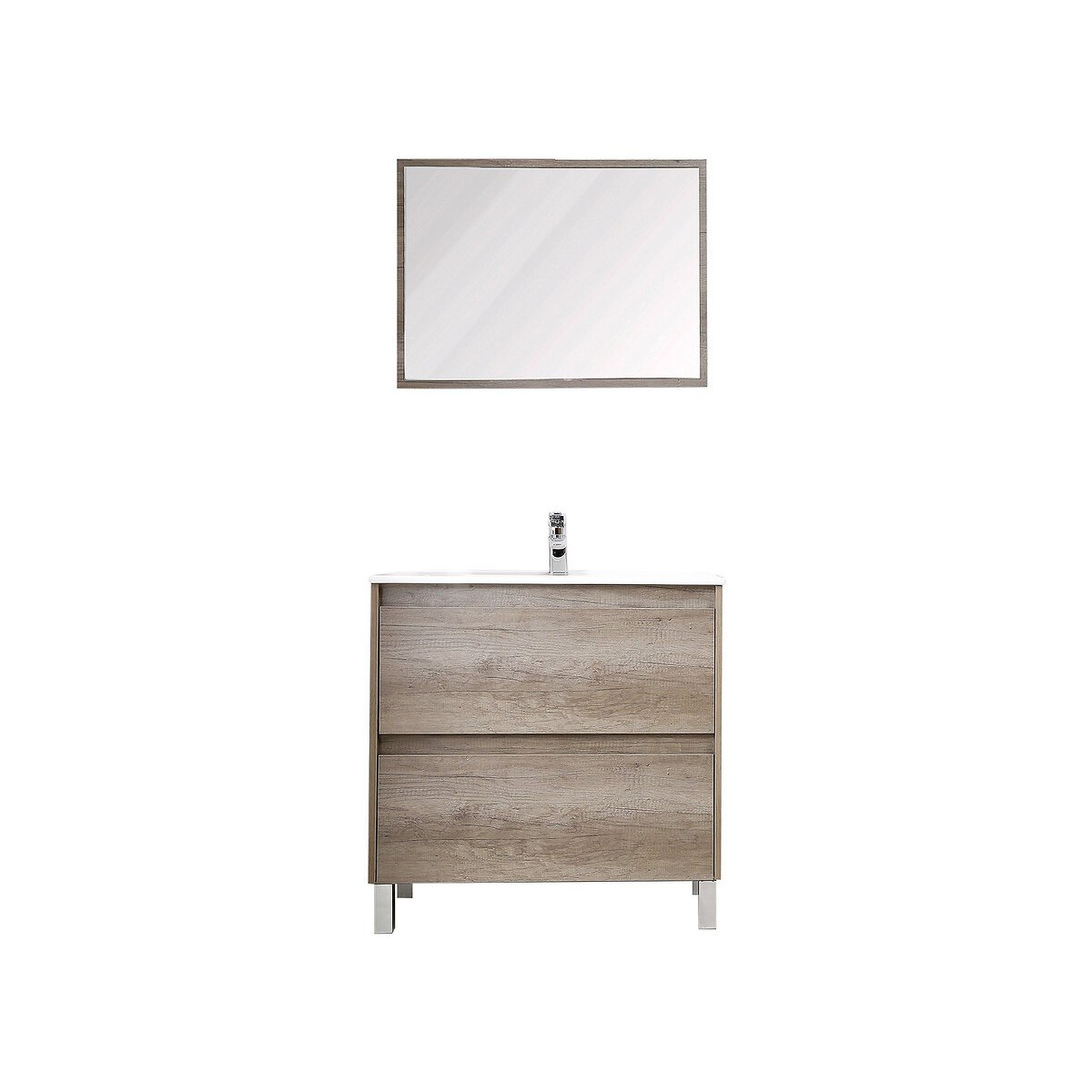 La gamme DALHIA se compose d'un meuble à poser avec miroir assorti et d'une colonne. Cette gamme crée une ambiance chaleureuse dans votre salle de bain. Meuble à poser disponible en dimension 80cm. Finition mélaminé bois brun. Ouverture poignées prise de main. Plan vasque céramique extra-plat 18mm, 1 vasque moulée avec trop plein. Miroir simple et non éclairant assorti au meuble, collé sur un panneau de particules mélaminé bois Chêne vieilli. Débordant formant un cadre autour du miroir. Miroir à suspendre. Livré kit. Fabrication Européenne. Ce produit de la collection Zen à Vivre vous assure un confort sans égal et vous permet profiter de votre intérieur en toute serenité.Spécifications techniques