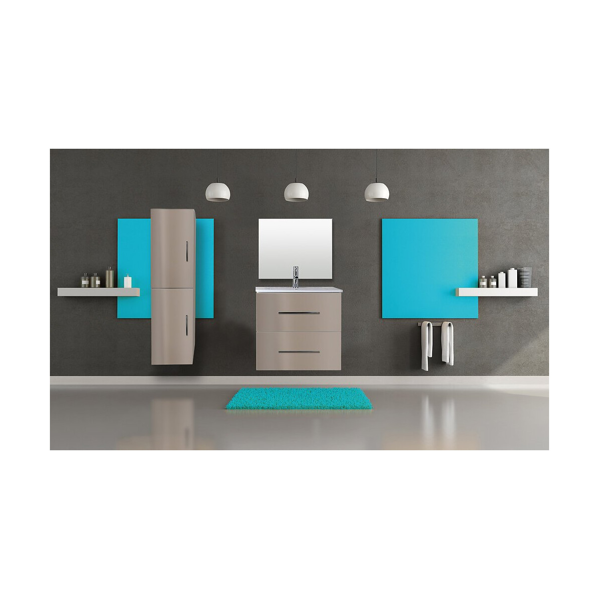 La gamme TANARO se compose d'un meuble suspendu avec un miroir simple en deux dimensions et d'une colonne à suspendre. Sobres et élégants sont conditionnés en one pack. Colonne à suspendre disponible en dimension 30cm. 2 Portes à fermeture progressive et installation réversible. Finition laqué taupe. Poignées en métal chromé. Plan vasque céramique extra-plat 20mm, vasque moulée avec trop plein. Vasque simple. Miroir simple à chants blancs, à suspendre. Livré en kit. One pack. Norme FSC Mixte Bois. Ce produit de la collection Zen à Vivre vous assure un confort sans égal et vous permet profiter de votre intérieur en toute serenité.