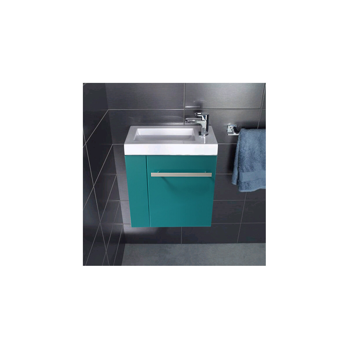 Dimensions : L43,5 x P23 x H45 cm 1 caisson à suspendre. A monter soi-même. Porte et côtés en MDF de 15mm d'épaisseur laqué Couleur au choix. Structure en panneau de particules mélaminé de 15mm d'épaisseur. Porte à ouverture réversible. Livré en kit. Vendu sans robinetterie.