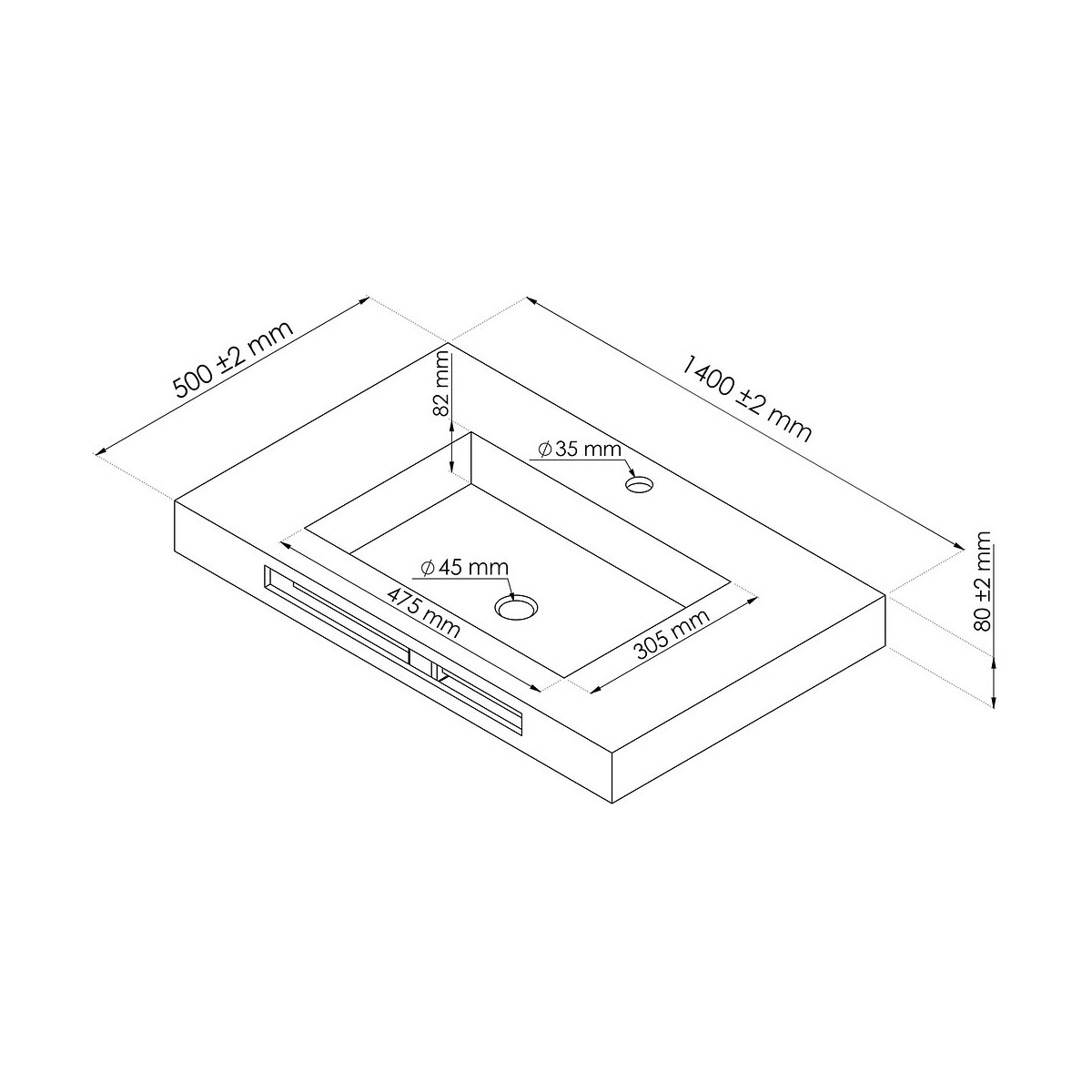 Plan Vasque À Suspendre Liceo - 140cm - Solid Surface - Avec Trop Plein Et Bonde