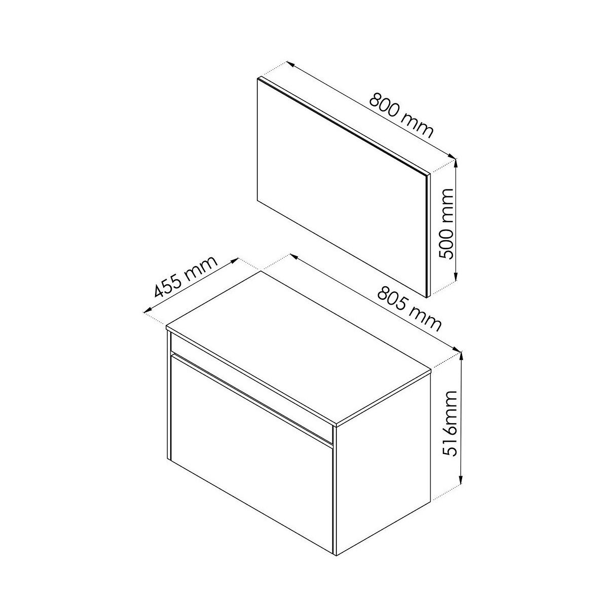 La gamme MAPLE propose un meuble à suspendre avec miroir assorti en 2 versions et 2 coloris au choix. Un meuble compact et fonctionnel dans des finitions contemporaines. Meuble à poser disponible en dimension 80cm pour vasque à poser. Finition mélaminé bois chêne gris. Ouverture prise de main. Plan pour vasque en mélamine finition bois chêne gris. Miroir simple 80x50cm et non éclairant assorti au meuble, collé sur un panneau de particules mélaminé bois chêne gris. Miroir à suspendre. Livré monté. Fabrication Européenne. Ce produit de la collection Zen à Vivre vous assure un confort sans égal et vous permet profiter de votre intérieur en toute serenité.Spécifications techniques