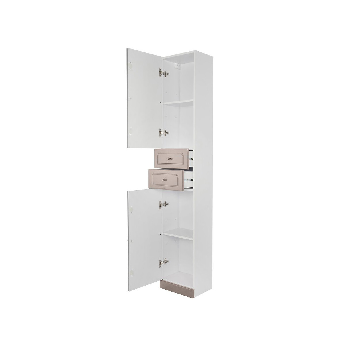 La gamme TOLEDE propose une offre complète de meubles à poser tout en un. Dans un style intemporel, la gamme offre une large capacité de rangement, miroir, spot et étagères compris. Colonne à poser disponible en dimension 35cm. 2 Portes à installation réversible et 2 tiroirs. Revêtement intérieur en mélaminé blanc. Finition PVC taupe brillant. Poignées chromés. Livré en kit. Ce produit de la collection Zen à Vivre vous assure un confort sans égal et vous permet profiter de votre intérieur en toute serenité.