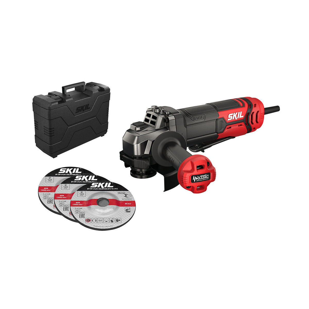 Meuleuse d’angle performante avec un système de réduction des vibrations innovant (« VRS+ ») La SKIL 9131 est une meuleuse d’angle performante pour disques de 125 mm. Son puissant moteur de 720 W assure de très bons résultats de découpe, meulage et dérouillage. L’innovation SKIL « VRS+ » assure une bien meilleure réduction des vibrations que les systèmes conventionnels. La poignée latérale intègre un contrepoids qui peut se déplacer dans toutes les directions. L’absorbeur dynamique ainsi obtenu réduit fortement les vibrations. Et selon le travail en cours, la poignée latérale peut être facilement ajustée dans l’une des trois positions ergonomiques. Cette meuleuse d’angle est dotée d’un interrupteur à palette très pratique assurant une maîtrise parfaite. Une pression extrêmement faible suffit et l’outil s’arrête dès que l’interrupteur est relâché. Un système « Clic » permet d’ajuster aisément la position du carter de protection, sans clé, afin de diriger les étincelles dans la direction voulue. L’outil est doté de roulements à billes étanches à la poussière et d’engrenages hélicoïdaux, ce qui garantit un couple élevé, une grande longévité et un faible niveau de bruit lors de l’utilisation. Son solide carter métallique profilé assure un maniement aisé de l’outil, même lors des travaux dans les espaces difficiles d’accès. Le système de blocage de l’arbre très pratique permet de changer de disque très facilement. La meuleuse d’angle SKIL 9131 GA est fournie dans un coffret robuste avec 3 disques à meuler. Puissance absorbée : 720 W Ø max. disque : 125 mm Vitesse à vide : 12000 tr/min. Ø alésage de l’arbre : 22 mm Filetage de broche : M14 Blocage de l’arbre pour un changement rapide des meulesSpécifications techniques
