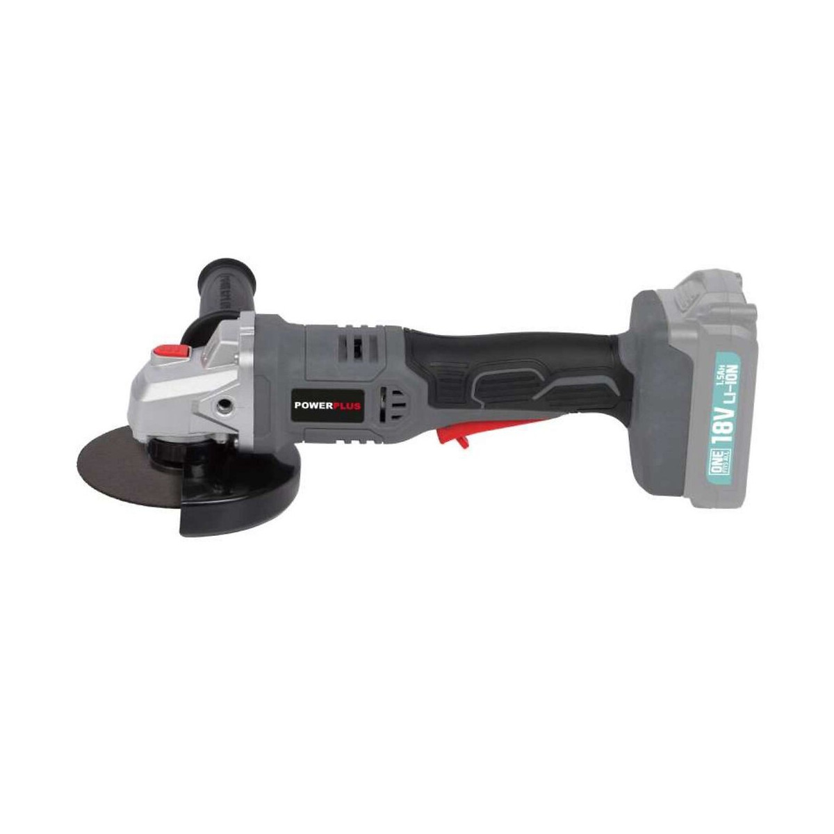 Informations techniques: Disque de 115 mm de diamètre Alésage: 22,2mm Poignée à revêtement souple Dispositif de blocage d'arbre Fonctionne avec une batterie 18v One Fits All Powerplus vendue séparément Type de batterie: Li-Ion Connexion de batterie: Slide On Meuleuse vendue sans disque