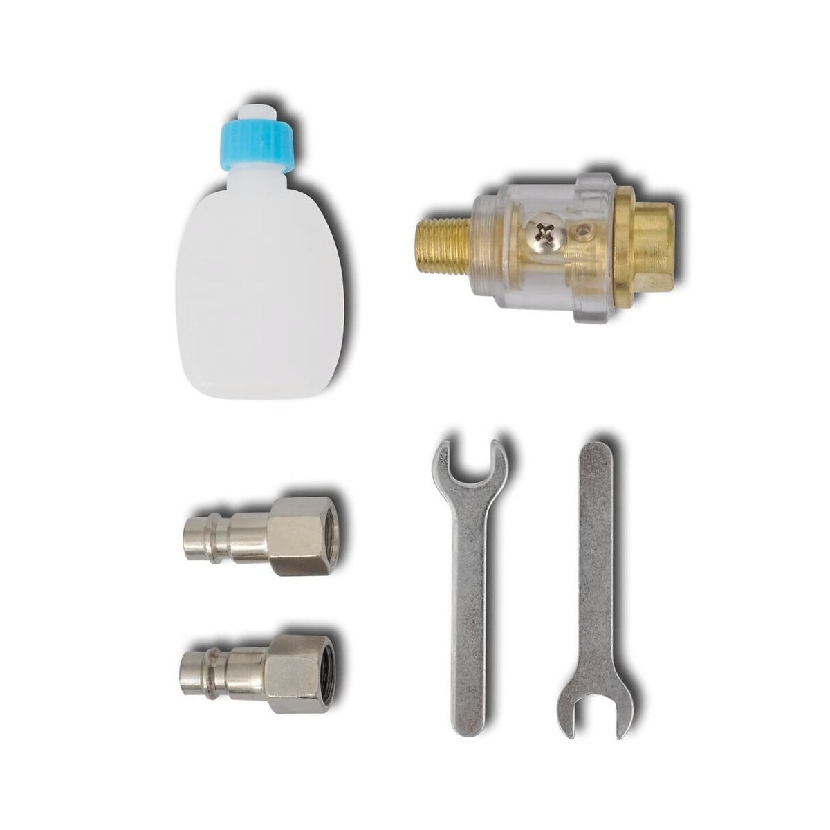 Cette mini meuleuse est fabriquée pour le ponçage, le polissage et le dérouillage. Cette mini meuleuse s'applique à la finition de surface pour le forgeron, le charpentier ou le sculpteur. Elle est également utilisée dans le domaine de la construction navale, l'industrie de la chaussure, l'industrie manufacturière, l'industrie du verre organique, l'industrie du plastique, etc. La meuleuse et tous les accessoires sont installés dans une mallette moulée pour faciliter le stockage et le transport. Vitesse: 0 à 54000 tr / min Diamètre de tige: 3 mm Raccord de tuyau d'air comprimé: 1/4'' Raccord de tuyau: 3/8'' Consommation d'air: 57 L / min Pression: 6,3 bar Câble: 123 cm Dimensions: 335 x 200 x 50 mm Poids: 0,7 kg Contenu: 10 -3 (1/8'') meules sur tige 2 prises mâles 2 clés de serrage 1 mini meuleuse pneumatique pour l'utilisation industrielle 1 mini huileur 1 burette 1 coffret moulé