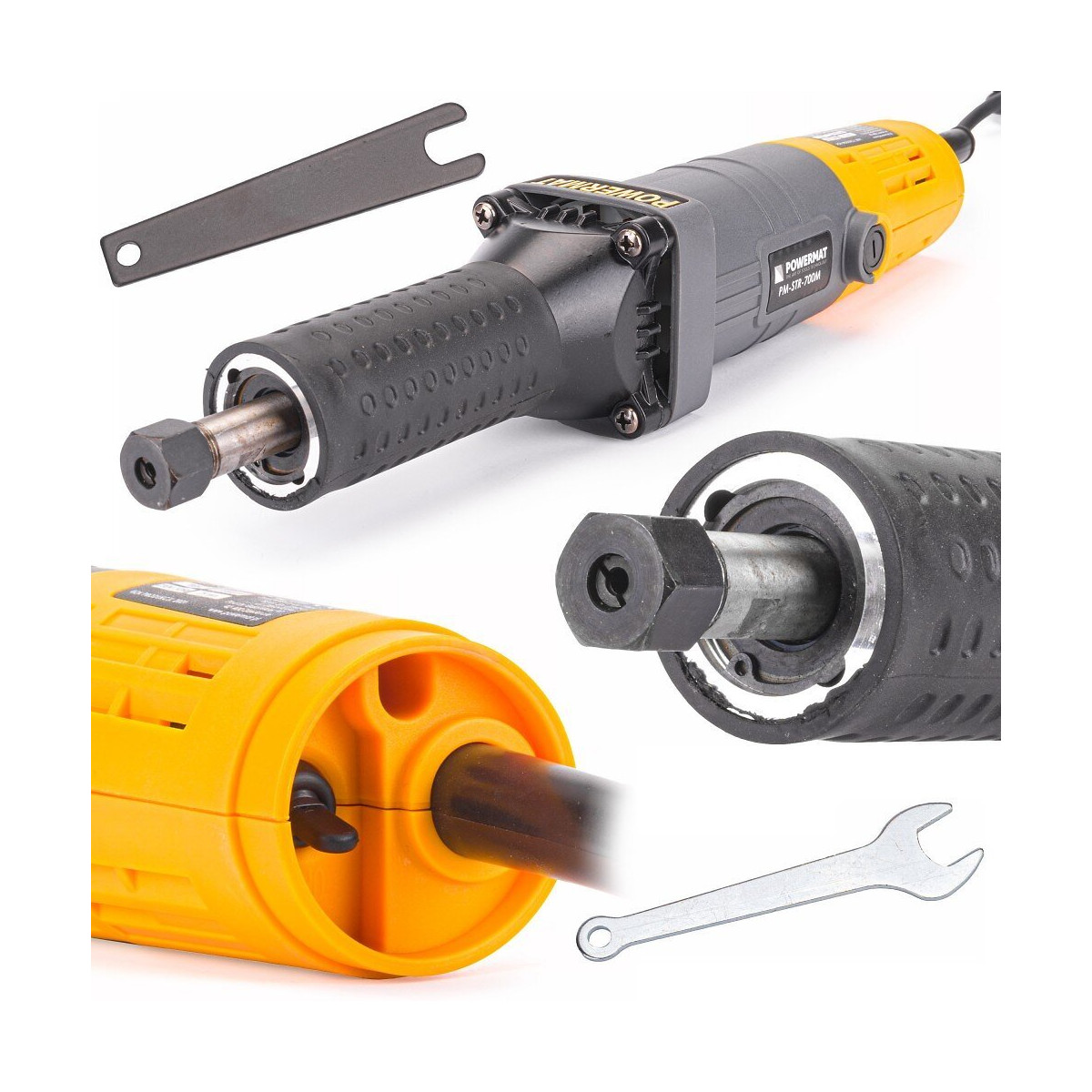 La meuleuse droite est utilisée en serrurerie, en menuiserie et pour tout type de traitement des matériaux en verre, en céramique et en plastique. Elle est efficace pour éliminer la corrosion dans les endroits difficiles d'accès ou pour meuler des bordures pointues,, CARACTÉRISTIQUES TECHNIQUES: Puissance : 700W, Tension d'alimentation : 230V / 50Hz, Vitesse de rotation : 27000 rpm, Diamètre de la pince : 6 mm, Classe d'isolation : II