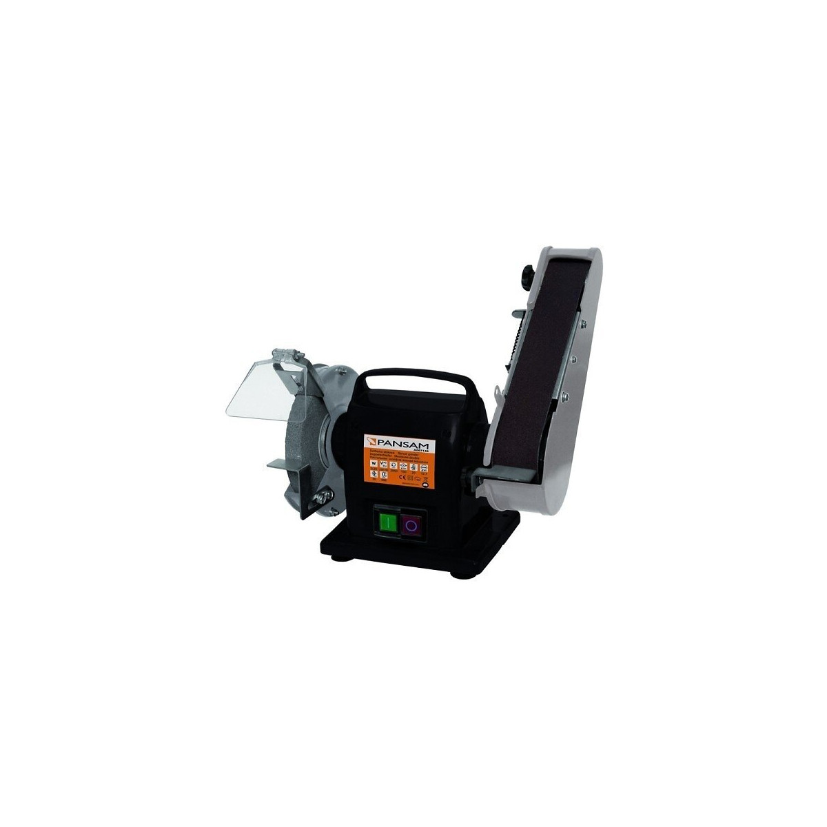 Ponceuse stationnaire 200 W, disque de 150 x 20 x 12,7 mm, bande de 50 x 686 mm, verrouillage de sécurité électromagnétique, CARACTÉRISTIQUES TECHNIQUES: Poids de 8 kg, Disque d'un diamètre de 150 mm, Alésage de 12,7 mm, Bande de 50 x 686 mm, Vitesse de rotation (écart possible) 2950 tr/minSpécifications techniques