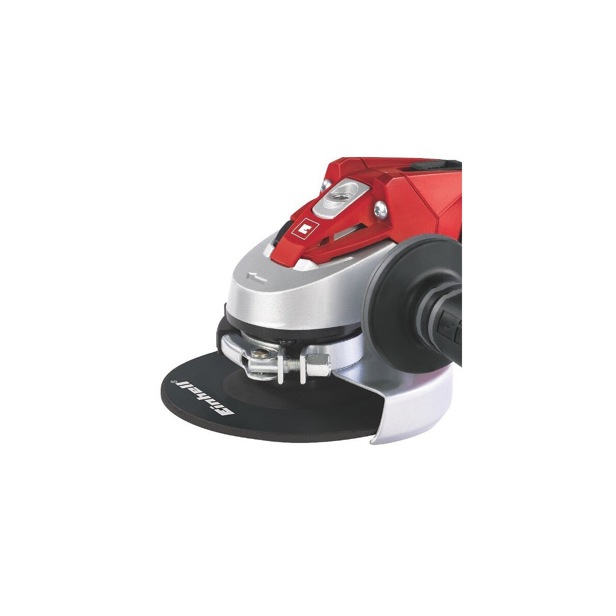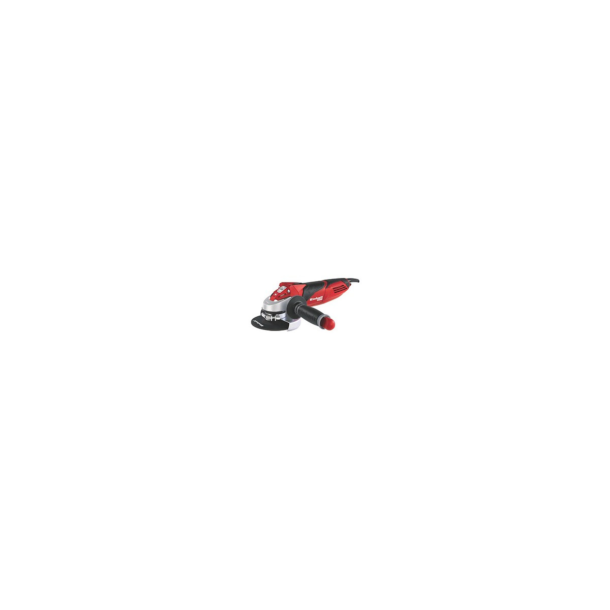 Kit meuleuse d'angle TE-AG 125/750 Einhell (750W, régime 11000 tr/min., ø des disques 125mm), blocage de l'arbre, disque de tronçonnage au diamant, coffret de transport Points forts : * Design fin ergonomique avec revêtement tendre "Softgrip" * Puissance de 750 Watt avec régime constant de 11.000 tr/min. * Blocage de l'arbre pour un changement rapide du disque * Clé à bride dans la poignée supplémentaire pour un changement facile des disques * Avec disque à tronçonner au diamant et pratique coffret de transport Design fin ergonomique avec revêtement tendre "Softgrip" Le kit meuleuse d'angle TE-AG 125/750 EXPERT est l'outil universel pour tous les travaux de tronçonnage, meulage et ébarbage dans la maison, l'atelier, le garage et le jardin. Son puissant moteur de 750 Watt avec sa tête métallique d'une conception très fine et le carter robuste en PVC permettent de réaliser sans effort et dans les endroits difficiles d'accès,des travaux précis, avec peu de vibrations et à plein régime. La poignée principale et la poignée supplémentaire sont à revêtement tendre "Softgrip" et assurent une prise en main sûre de la meuleuse d'angle. Blocage pratique de l'arbre pour changer rapidement tous les disques Le blocage de l'arbre en appuyant sur un bouton permet le changement rapide et confortable des disques jusqu'à un diamètre de 125 mm. Réglage rapide et sans outil du capot de protection Le réglage rapide sans outil du capot de protection des disques et des charbons de la meuleuse d'angle à une seule main permet de l'adapter facilement et sûrement à chaque tâche. Poignée supplémentaire à revêtement tendre "Softgrip", fixable en 3 positions La poignée supplémentaire à revêtement tendre "Softgrip" peut se fixer en 3 positions différentes pour avoir à tout moment une bonne prise en main de la meuleuse d'angle électrique dans toutes les situations de travail. Clé à bride dans la poignée supplémentaire pour un changement facile des disques Une clé à bride bien accessible est rangée dans la poignée supplémentaire pour changer rapidement les disques. Rechercher l'outil pour changer le disque fait ainsi partie du passé ! Rangement pratique grâce au coffret de transport et au fixe-câble Après utilisation, on peut ranger impeccablement la meuleuse d'angle et les accessoires dans le pratique coffret de transport. Le long câble d'alimentation de 3 m y trouve également sa place. Données techniques : Tension d'alimentation : 230 V ~ 50 Hz Puissance absorbée : 750 Watt Régime : 11.000 tr/min. Diamètre des disques : 125 mm Longueur du câble : 3,0 m Poids du produit : 2,2 kg