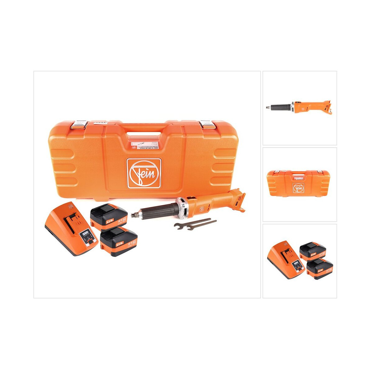 Contenu de la livraison: - 1x FEIN AGSZ 18-280 LBL Meuleuse droite sans fil 18V (71230262000) - 1x Pince Ø 6 mm - 1x Clé SW13 - 1x Clé SW17 - 1x Boîte à outils en plastique - 2x Batteries FEIN 18V 6.0 Ah Li-Ion (92604175020) avec affichage LED - 1x Chargeur rapide FEIN ALG 80 18 V (92604180010) Description du produit: La FEIN AGSZ 18-280 LBL est une meuleuse droite sans fil compacte, résistante à la poussière et puissante avec une profondeur d'immersion élevée pour des travaux de coupe, de meulage, d'ébavurage et de fraisage efficaces. La nouvelle génération de moteurs FEIN PowerDrive sans balais garantit une durée de vie maximale et le carter du moteur complètement fermé protège le moteur de manière optimale contre les copeaux agressifs de céramique et de minéraux. La meuleuse droite sans fil FEIN est idéale pour toutes les applications grâce à des vitesses optimales, adaptées à de nombreux abrasifs et matériaux, et convainc également par sa présélection de vitesse électronique en continu. L'AGSZ 18-280 LBL est extrêmement puissant avec un rendement 30% plus élevé que les moteurs universels comparables avec une puissance d'entrée de 1 100 watts. Le moteur sans entretien se caractérise par des ailettes de refroidissement innovantes pour un refroidissement optimal, y compris la surveillance de la température, ainsi qu'un fonctionnement en douceur et un travail à faible vibration. Le FEIN AGSZ 18-280 LBL offre également une protection étendue de l'utilisateur grâce à un démarrage en douceur, une protection contre le redémarrage, une protection électronique contre les surcharges et un frein ainsi que des pinces innovantes avec un collier circonférentiel pour protéger la pièce et empêcher la clé de glisser lors du changement d'outils. Le col long et mince permet une immersion profonde dans les pièces et la conception compacte et le faible poids avec un bon équilibre garantissent un travail sans fatigue grâce à une poignée mince. L'interface FEIN MultiVolt offre une flexibilité maximale, car la meuleuse droite FEIN peut être utilisée avec toutes les batteries Li-ion FEIN (12 à 18 volts). Spécifications techniques: Meuleuse droite sans balais FEIN AGSZ 18-280 LBL dans un étui Tension des piles: 18 V Moteur: sans balais Régime de ralenti: 9,000 - 28,000 tr/min Roue abrasive: max. Ø 50 mm Pince: max. Ø 8 mm Fraise: max. Ø 12 mm Poids sans batterie: 1,60 kg Batterie FEIN 18V 6.0 Ah Li-Ion Tension: 18 V Capacité: 6 Ah Type de cellule: lithium-ion Chargeur rapide FEIN ALG 80 18 V Tension de charge de la batterie: jusqu'à 18 V Courant de charge: 8 ampères interface USB Affichage LED Poids: 680 g