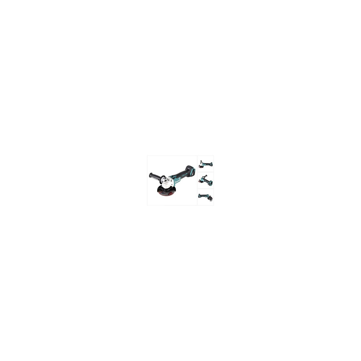 Contenu du paquet: - 1 x Makita DGA 504 Z 18 V Li-Ion Meuleuse sans fil - 1 x Meule Makita à ébarber à moyeu déporté 125 mm A-80656 - 1 x Clé de montage - 1 x Poignée latérale soft grip Description du produit: La meuleuse sans fil Makita DGA 504 est légère, compacte et puissante presque la même performance qu’un modèle filaire, grâce à son moteur sans charbon. Pour assurer un travail efficace et optimal, la machine est munie de la technologie ADT (Automatic torque Drive Technology) qui contrôle le régime du moteur en fonction de la charge appliquée. Pour plus de sécurité la meuleuse sans fil Makita DGA 504 est doté d'un système de coupure du moteur dès le relâchement de l'interrupteur, d'un système de démarrage progressif assurant un démarrage en douceur de la machine et d'une protection contre tout démarrage intempestif lors de l'échange de la batterie. La machine est doté de la technologie XPT limitant les infiltrations d'eau et de poussières et de témoins lumineux donnent des indications sur l'état de charge de la batterie. Spécifications techniques: Vitesse à vide max.: 8.500 tr/min Diamètre du disque: 125 mm Diamètre de l'alésage: 22,23 mm Tension: 18 V Dimensions (LxlxH): 350x141x130 mm Poids: 2,3 kg