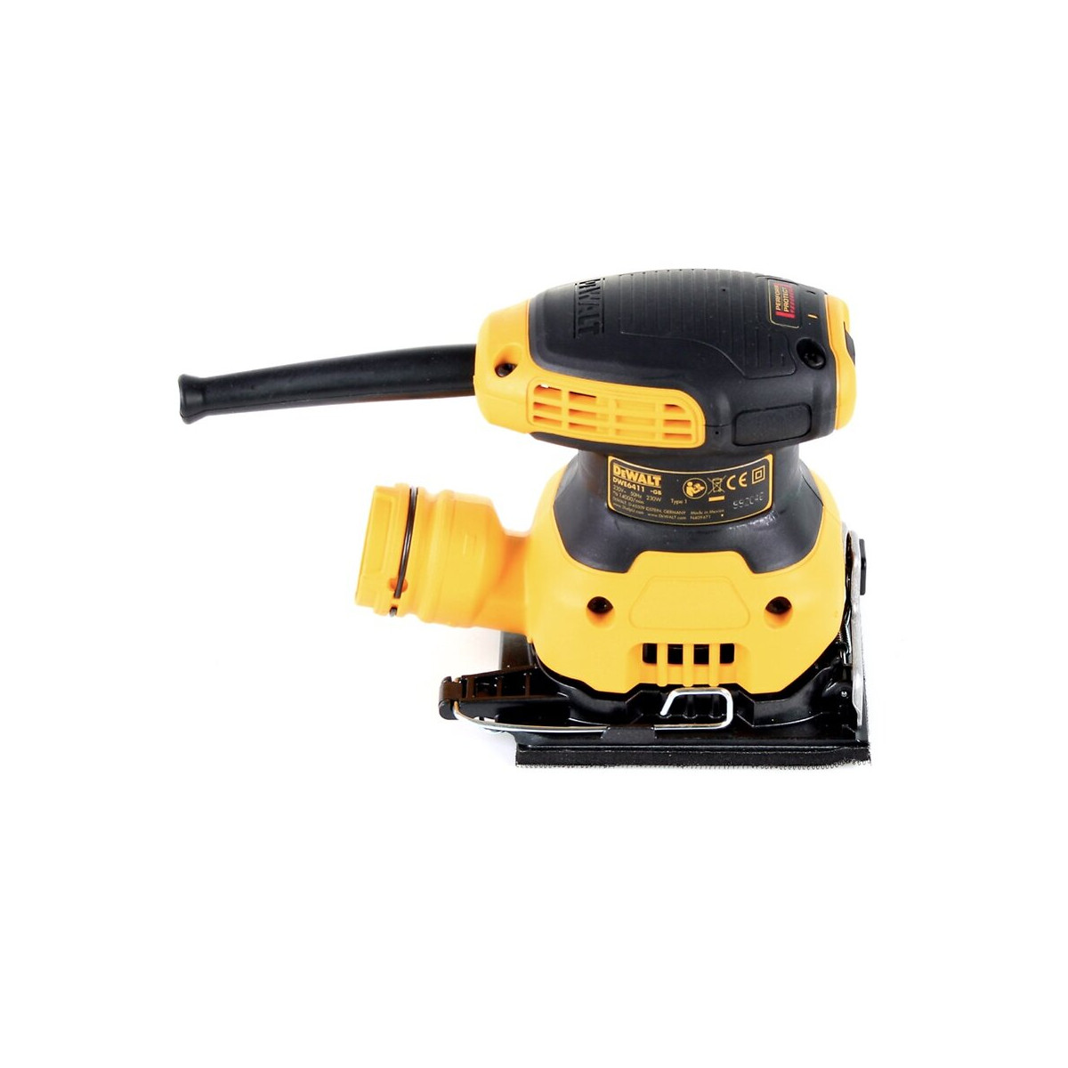 Contenu du paquet: - 1x DeWalt DWE 6411 Ponceuse vibrante 230 W - 1x Sac à poussière - 1x Capot de protection - 1x Papier abrasif P120 Description du produit: La broyeuse vibrante DWE 6411 de DeWalt impressionne par son design compact et son poids léger. Parallèlement, avec son moteur de 230 W, il offre une performance de meulage élevée dans toutes les applications. La rectifieuse est équipée du système Klettfix pour un changement rapide du papier abrasif. Un dispositif de serrage supplémentaire est fourni pour le papier abrasif conventionnel. Les interrupteurs et les paliers sont équipés d'une protection spéciale contre la poussière, ce qui augmente considérablement leur durée de vie. Le grand collecteur de poussière avec adaptateur d’aspiration intégré absorbe beaucoup de matériaux abrasifs. Un contrepoids à ressort permet de réduire les vibrations. Spécifications techniques: Puissance d'enregistrement: 230 watts Vibrations par minute: 14000 Circuit d'oscillation: 1,6 mm Taille de la plaque de broyage: 108 x 115 mm Dimensions de ponçage: 140 x 115 mm Longueur x hauteur: 160 x 135 mm Intensité de la vibration traxiale: 4,0 m / s² Facteur d'incertitude relatif aux vibrations K1: 1,5 m/s² Pression acoustique: 82dB (A) Facteur d'incertitude de la pression acoustique K1: 3,0 dB (A) Puissance sonore: 93 dB (A) Facteur d'incertitude de la puissance acoustique K2: 3,0 dB (A)