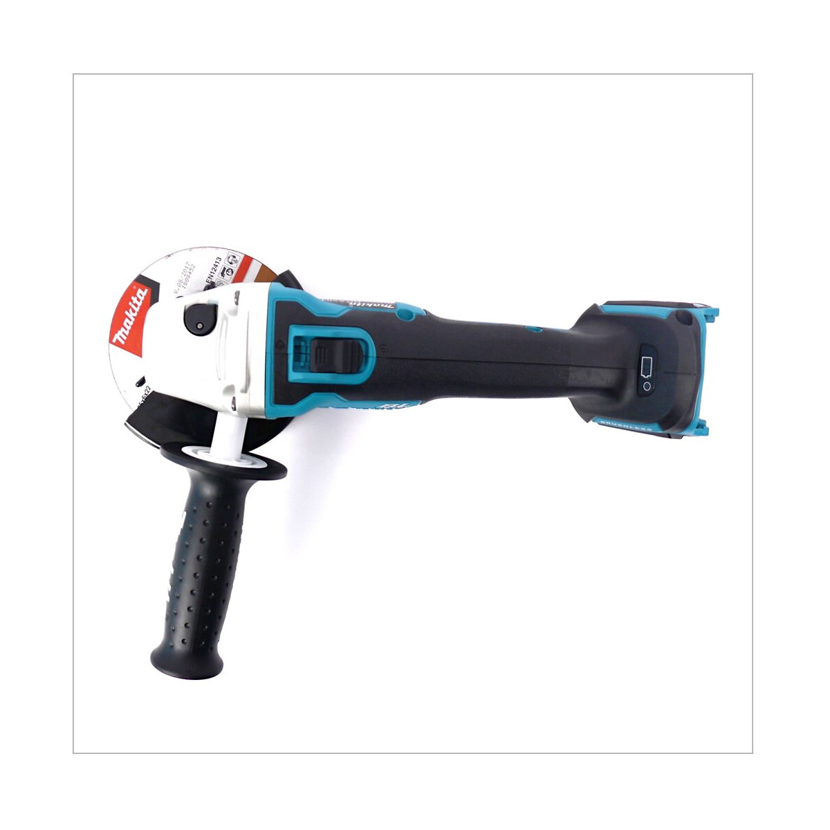 Contenu du paquet: - 1x Makita DGA 504 18 V Li-Ion Meuleuse sans fil - 1x Batterie Makita BL 1830 18V Li-Ion 3,0 Ah - 1x Disque à ébarber à moyeu déporté Makita 125 mm A-80656 - 1x Clé de montage - 1x Poignée latérale soft grip - 1x Manuel d'utilisation - sans Chargeur Description du produit: La meuleuse sans fil DGA 504 de Makita est légère, compacte et puissante presque la même performance qu’un modèle filaire, grâce à son moteur sans charbon. Pour assurer un travail efficace et optimal, la machine est munie de la technologie ADT (Automatic torque Drive Technology) qui contrôle le régime du moteur en fonction de la charge appliquée. Pour plus de sécurité la meuleuse sans fil Makita DGA 504 est doté d'un système de coupure du moteur dès le relâchement de l'interrupteur, d'un système de démarrage progressif, assurant un démarrage en douceur et d'une protection contre tout démarrage intempestif lors de l'échange de la batterie. La machine est doté de la technologie XPT limitant les infiltrations d'eau et de poussières et de témoins lumineux donnent des indications sur l'état de charge de la batterie. Spécifications techniques: Vitesse à vide: 8.500 tr/min Diamètre du disque: 125 mm Diamètre de l'alésage: 22,23 mm Tension: 18 V Dimensions (LxlxH): 350x141x130 mm Poids: 2,3 kg