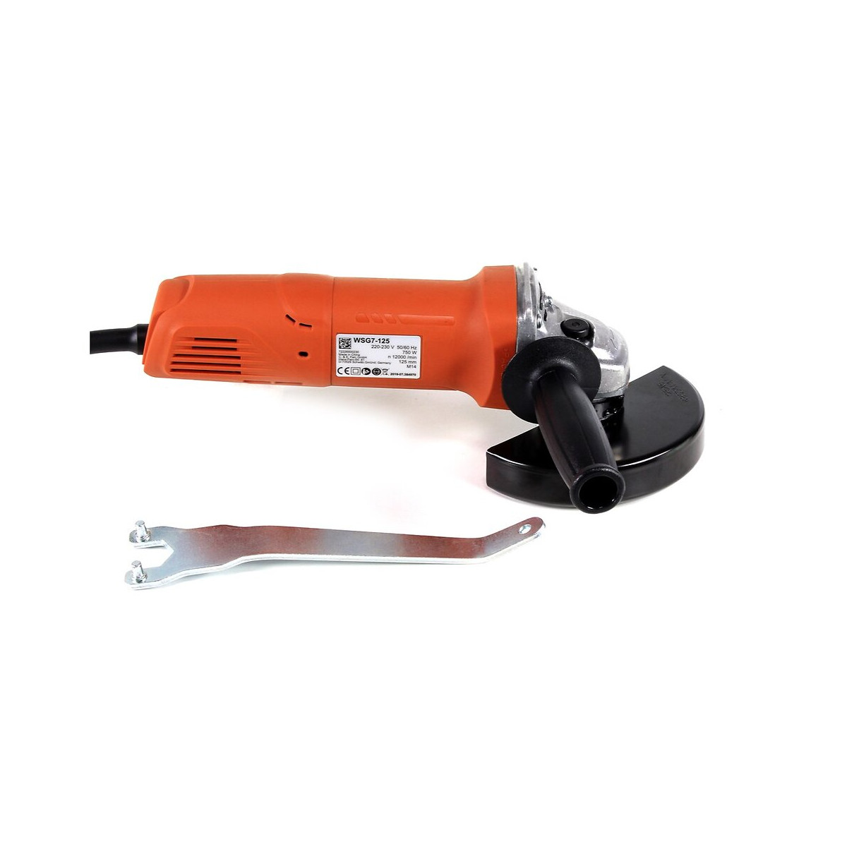 Contenu de la livraison: - 1x FEIN WSG 7-125 Meuleuse d'angle compacte ( 72226560000 ) - 1x Capot de protection - 1x Paire de flasques - 1x Poignée supplémentaire - 1x Clé Description du produit: La meuleuse FEIN WSG électrique doit être utilisé pour le meulage à sec, le ponçage du papier de verre, le travail avec des brosses métalliques et la découpe du métal et de la pierre. Il n'est pas adapté au polissage. L'interrupteur à glissière sur le côté et la petite taille de la poignée assurent une ergonomie parfaite. Le verrouillage du redémarrage empêche la meuleuse d'angle de redémarrer automatiquement si l'alimentation électrique est interrompue, même brièvement, pendant le fonctionnement. De plus, l'outil est équipé d'une protection contre les surcharges et les blocages. En cas de surcharge ou de blocage de l'outil, l'alimentation électrique est interrompue. La tête d'engrenage entièrement métallique, qui peut être tournée par pas de 90°, assure une robustesse maximale et une très bonne accessibilité dans les endroits étroits. La meuleuse d'angle compacte combine un travail peu fatigant et une longue durée de vie avec un haut degré de sécurité. Spécifications techniques: Puissance absorbée : 750 W Puissance utile : 440 W Ø du disque : 125 mm Elast. disque de meulage : 125 mm Bride : M14 Vitesse de ralenti : 12000 tr/min Longueur du câble : 4 m Poids : 1,8 kg Niveau de pression acoustique : 86 dB(A) Niveau de puissance sonore : 97 dB(A) Incertitude (K) : 3 dB Vibration (ponçage avec feuille abrasive) : 1,6 m/s2 Vibration (meulage d'angle) : 7,2 m/s2 Incertitude (K) : 1,5 m/s2