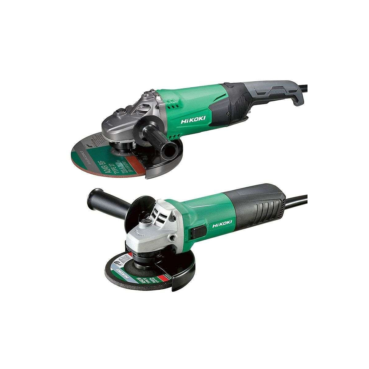 Avantages produit Meuleuse G23SW2 230mm 2200W Meilleur durabilité de surcharge de classe 1 Bobines de stator réduits de moitié pour l'efficacité de refroidissement suffisante augmentation moteur durabilité Le moteur est protégé de la poussière et les débris à travers la construction de labyrinthe Poignée souple pour plus de confort Grand levier de commutation pour plus de contrôle Caractéristiques techniques Meuleuse G23SW2 230mm 2200W Diamètre du disque : 230 mm Filetage de la broche : M14 x 2 Puissance absorbée : 2200 Watt Vitesse à vide: 6600 /min. Poids: 5,1 kg Longueur: 469 mm Avantages produit Meuleuse G13SR3 125mm 730W Meuleuse Hitachi puissante et légère Meule et disque Ø 125 mm Interrupteur autobloquant Prise en main facilité d'une seule main Blocage de l'arbre intégré Carter de protection orientable Tous travaux de tronçonnage, meulage et ébarbage Caractéristiques techniques Meuleuse G13SR3 125mm 730W Axe: M14 Diamètre du disque : 125 mm Vitesse à vide : 10 000 tr/min Puissance : 730 W Tension d'alimentation : 230 V Poids : 2 kg Accessoires 1 Meuleuse G23SW2 230mm 2200W 1 Meuleuse G13SR3 125mm 730W 2 Capots de protection 2 Poignées latérales 2 Clés à ergots 1 Disque à erbaber 230mm