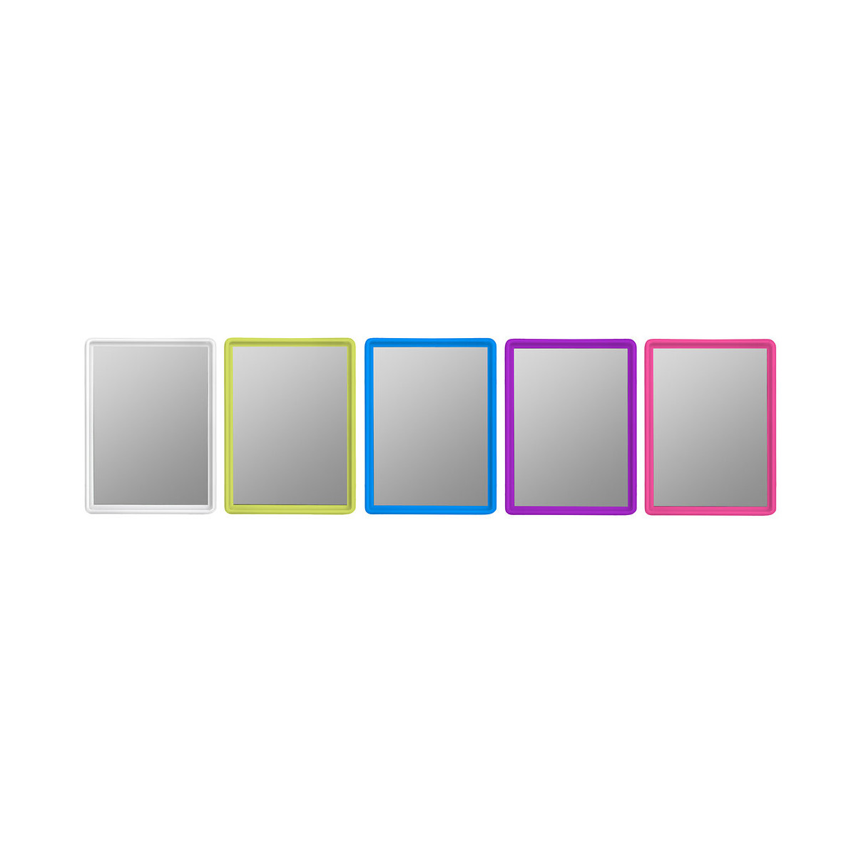 - Miroir chevalet cosmétique Joana aluminium de forme rectangulaire à suspendre ou à poser. - Encadrement et accroche servant également de pied en plastique opaque (Polypropylène). - Coloris bleu, vert anis, framboise, violet foncé ou blanc. 1 face miroir non grossissante. - Dimensions du miroir (hors encadrement) : Hauteur 11,7 cm x Largeur 16,7 cm x Épaisseur 0,2 cm - Dimensions totales : Hauteur 12,8 cm x Largeur 17,8 cm x Épaisseur 1 cm.