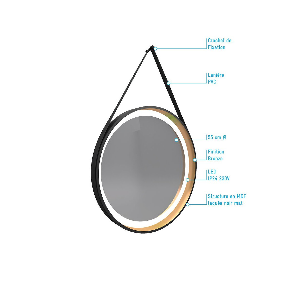 Caractéristiques du miroir : Crochet de fixation Lanière PVC Finition Bronze LED IP24 230V Flux lumineux (lumens): 841 lm Consommation : 11.6 kWh/1000h Structure en MDF laqué noir mat Dimension du miroi : 55 cm de diamètre Référence : MIR029 Garantie 2 ans pièces et non main d'oeuvre. MyShowerRoom c’est aussi la garantie de durabilité : Nous garantissons un stock de pièces détachées d’au moins 5 ans Notre visserie est en acier inoxydable ce qui est une garantie anticorrosion Garantie 2 ans pièces uniquement Cocorico ! MyShowerRoom est une entreprise Française et toute la conception de nos produits est également Française. Ce qui est un véritable plus pour être au plus près de ses clients et avoir une meilleure connaissance de leurs attentes. Qui sommes nous L’HISTOIRE DE MYSHOWERROOM Nous avons créé MyShowerRoom en 2003 avec l’ambition de démocratiser le design et l’innovation dans la salle de bain pour faire de cette pièce un lieu à part entière, un véritable lieu d’histoires à vivre pour toute la famille. Nos cabines de douche et meubles de salle de bain dans l’ère du temps à des tarifs très accessibles. Nos nombreux brevets garantissent l’originalité de notre gamme de cabines de douches. Et nos ingénieurs mettent en œuvre tout leur savoir-faire et toutes les technologies innovantes au service d’une simplicité d’installation et d’utilisation incomparable pour tous. ÊTRE BIENVEILLANT AVEC NOS CLIENTS Notre service client a un objectif : rendre nos clients heureux. Pour cela nous veillons à répondre dans les 24h aux demandes clients. Mais aussi de toujours apporter une solution et entière satisfaction à nos clients. CONSTRUIRE DES PRODUITS TOUJOURS PLUS PERFORMANTS Nos ingénieurs, ainsi que nos équipes terrain consacrent tous leurs efforts à créer des produits adaptés à vos besoins, et toujours plus innovants grâce à nos technologies. Notre objectif est d’être votre unique interlocuteur pour tous vos projets de salle de bain. CONCRÉTISER LES RÊVES DE CHACUN Un projet de salle de bain ? Nous le réalisons ! Lieu de détente et de relaxation par excellence, la salle de bain est une des pièces maîtresse de la maison. Chez MyShowerRoom, nous mettons tout en oeuvre afin que ce rêve devienne réalité. PROPOSER UNE GAMME COMPLÈTE DE PRODUITS Nous vous proposons grâce à notre boutique en ligne une gamme complète de produits Made in MyShowerRoom pour équiper, et accessoiriser votre salle de bain. Un catalogue que nous renouvelons régulièrement avec les dernières technologies MyShowerRoom. APPORTER UNE EXPERTISE HUMAINE Parce que l’humain passe avant tout, nous travaillons avec les meilleurs experts. La satisfaction de nos clients est notre seule et unique priorité. Chaque problème a une solution, et c’est dans cette optique que nous avons mis en place un chat pour échanger directement avec nos équipes. NOTRE CENTRE LOGISTIQUE 11 000 m² d’entrepôt 7000 palettes en stock 1 800 colis traités par jour Plus de 260 préparations de commandes quotidiennes 12 quais de chargement/déchargement CONSEILS & VENTES Une équipe disponible 5 jours sur 7 pour vous accompagner dans vos achats. LIVRAISON GRATUITE Pour toute commande sur le site MyShowerRoom, la livraison est gratuite dans toute la France. UNE GARANTIE DE QUALITÉ Grâce à nos produits brevetés vous bénéficiez de produits uniques. Référence produit: MIR029 Retrouvez plus d'informations produit et des conseils de montage sur le site Aurlane. Remarques importantes: Ces colis sont volumineux, la livraison est effectuée par transporteur spécialisé en bas de chez vous. Les chauffeurs ne sont pas habilités à porter la marchandise, mais uniquement à la décharger. Pas de livraison à l'étage. L'adresse de livraison doit être accessible en camion poids lourd. Dans le cas contraire la marchandise sera mise à disposition au dépôt le plus proche (distance non garantie). Les rendez-vous sont gérés directement par les transporteurs. Attention à bien contrôler la marchandise à réception pour éviter tous litiges.