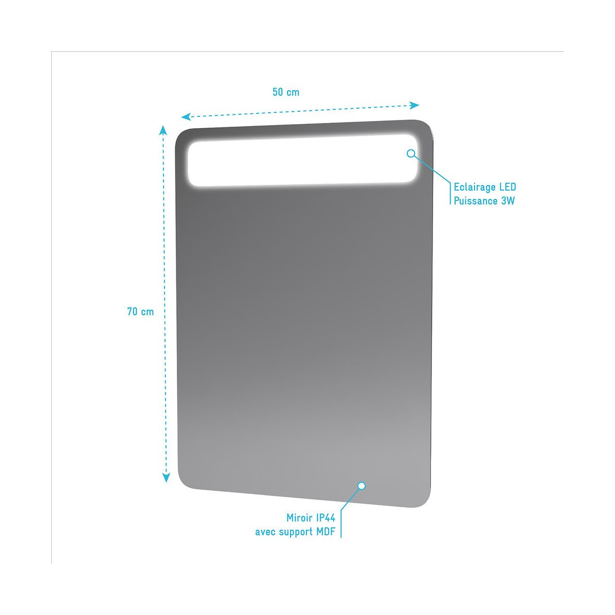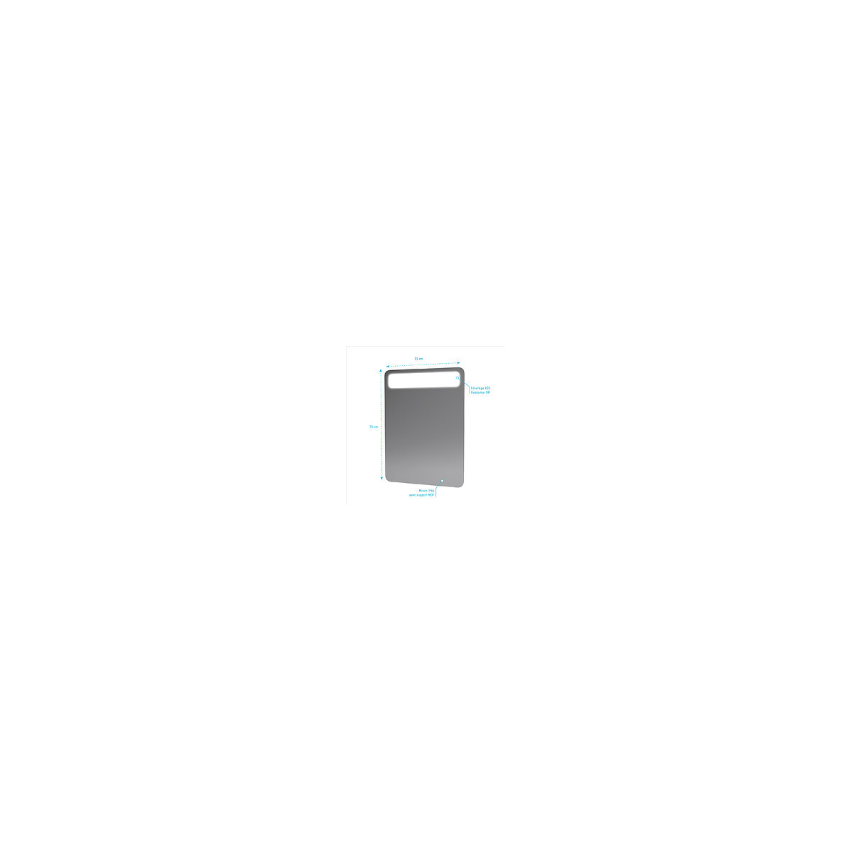 Caractéristiques techniques Dimensions: 50x70x5cm Miroir IP44 avec support MDF Eclairage Led puissance 1W Puissance: 3W Flux lumineux (lumens):162 lm - Température de couleur (Kelvin) : 4000K (day light) Classe energetque : A+ Indice de protection: IP44 Transformateur fourni Type de culot: LED intégrée Poids: 5kg Référence: LAV478 Garantie 2 ans Référence produit: LAV478 Retrouvez plus d'informations produit et des conseils de montage sur le site Aurlane. Remarques importantes: Ces colis sont volumineux, la livraison est effectuée par transporteur spécialisé en bas de chez vous. Les chauffeurs ne sont pas habilités à porter la marchandise, mais uniquement à la décharger. Pas de livraison à l'étage. L'adresse de livraison doit être accessible en camion poids lourd. Dans le cas contraire la marchandise sera mise à disposition au dépôt le plus proche (distance non garantie). Les rendez-vous sont gérés directement par les transporteurs. Attention à bien contrôler la marchandise à réception pour éviter tous litiges.