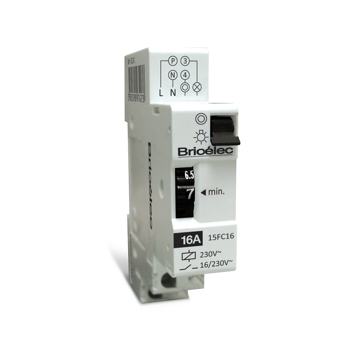 Minuterie 16A, permet d'allumer ou de programmer l'extinction d'un éclairage ou d'une ventilation pendant un temps donnéSpécifications techniques