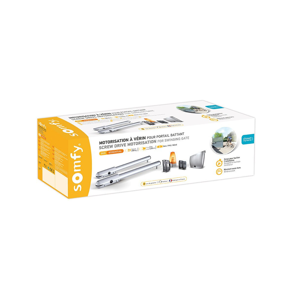 Conçu et fabriqué en France, SGS Essential, motorise les portails battant jusqu'à 250 kg par vantail. Moins volumineux qu'une motorisation à bras, il intègre les accessoires essentiels pour l'installation : télécommandes de poche, feu orange et cellules de sécurité. Pour les vantaux jusqu'à 2,5 m de large, 2 m de haut et 250 kg chacun. SGS Essential motorise les portails à structure rigide : bois, et avec renfort: PVC, fer, aluminium. Confort d'utilisation : possibilité de fermeture automatique. Ouverture partielle pour vélo ou piéton. 2 télécommandes de poche robustes et pratiques Keypop RTS. Sortie éclairage de zone pour lier un éclairage de l'allée au fonctionnement de la motorisation. Sécurité : Tenue en fermeture optimale grâceà sa mécanique irréversible. Détection d'obstacle automatique. Déverrouillage pour manoeuvrer le portail à la main en cas de besoin. Feu orange clignotant qui signale les mouvements du portail. Installation et programmation faciles. Butées intégrées : pas besoin de butées d'ouverture au sol. Disque de calcul de côtes. Câblage facile grâce aux borniers de couleur numérotés. Voyant feedbacks de fonctionnement. Télécommandes déjà appairées. Mise en route simple et rapide via la télécommande. Notice d'installation pas à pas, détaillée et illustrée. Vous pouvez enrichir votre installation avec des accessoires supplémentaires, comme la batterie de secours, et des dispositifs de contrôles d'accès comme le clavier à code et les visiophones Somfy RTS.Spécifications techniques