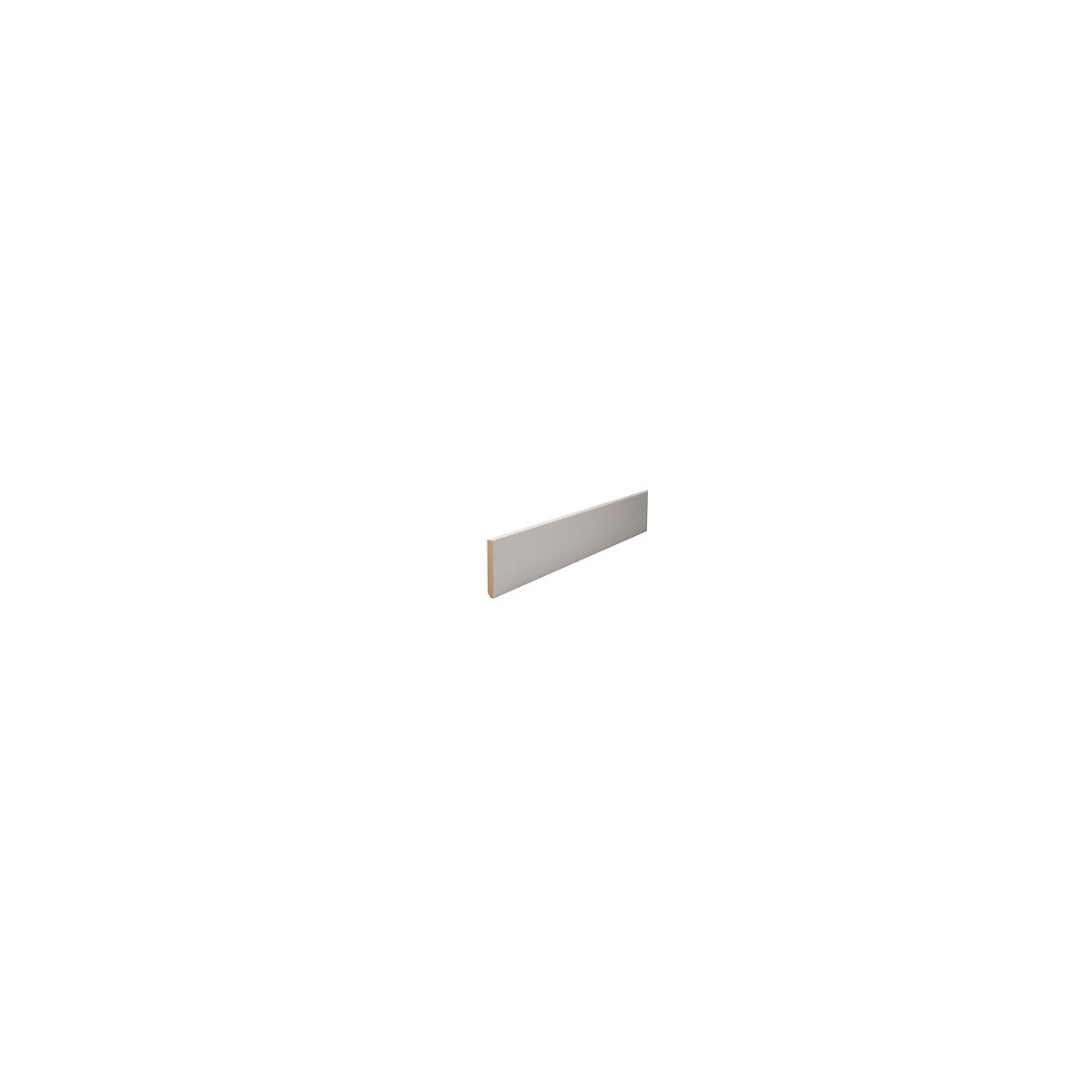Plinthe arêtes vives. MDF prépeint blanc. Dimensions : L.2440 x l.100 x E.10 mm.